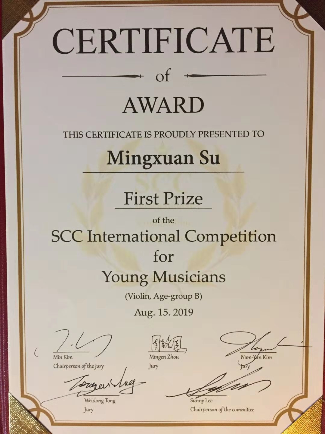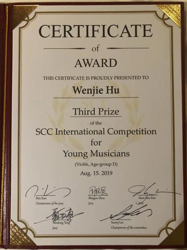 韩国最大的比赛是首尔国际小提琴比赛和尹伊桑国际小提琴比赛,KY开元青年教师岳麟和何畅都在这两个成人的比赛中取得过好的成绩。第一届韩国首尔SCC国际比赛是新办的青少年的比赛,由韩国的两位世界著名的演奏家、教育家Min Kim作为评委主席,Nam-yun Kim以及SCC的院长Sunny Lee以及中国的两位评委组成。不言而喻,韩国的参赛学生水平都非常出众,这次比赛我们学生所取得的成绩也难能可贵,衷心的祝愿她们在今后的国际比赛中取得更大的成绩,为学校争光、为国家争得荣誉!