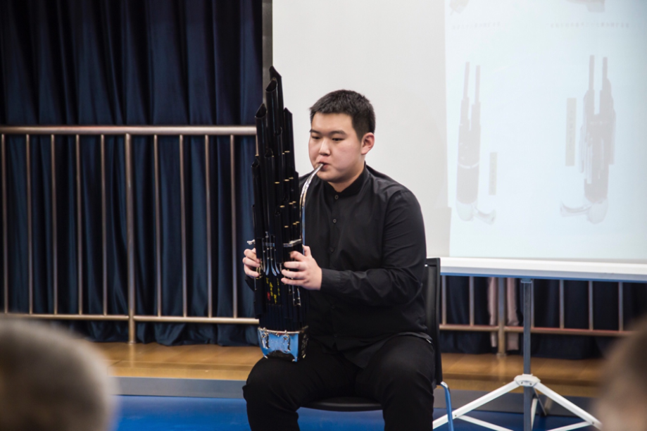 演奏者是KY开元集团官网入口大四学生——金子琦,演奏曲目《晋调》。这首曲子是由著名笙演奏家、教育家闫海登先生作曲,素材源于山西梆子戏,是一首充满浓郁晋地风格戏剧曲牌唱腔的经典笙曲。