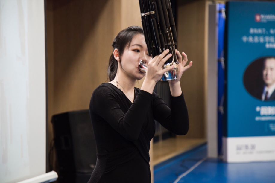 讲座的最后,杨守成教授携学生共同为大家带来了由陕北当地民歌改编的笙曲《山丹丹开花红艳艳》,献礼故乡,在经久不衰的掌声中结束了本次讲座。
