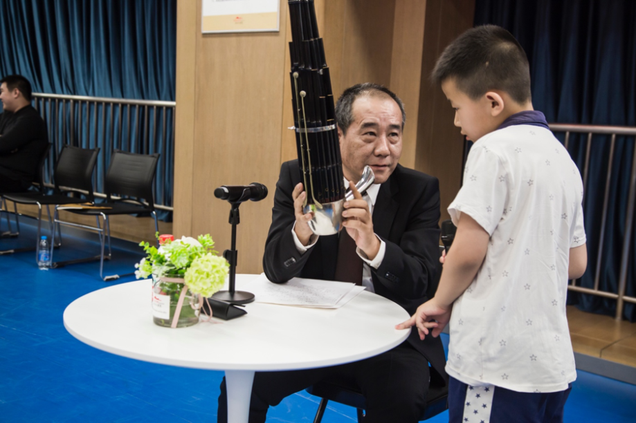为了更好的向观众介绍,杨守成教授在此次讲座中,分别从笙的历史、种类、形制以及现状进行细致讲解,理论结合乐曲欣赏,巧妙的将基础理论知识与现场演奏相融合,使得观众对这样一件乐器有了更深入、更直观的了解,激发了观众对笙的兴趣。现场掌声不断,小朋友们更是兴趣盎然,积极上台互动并踊跃提问问题。