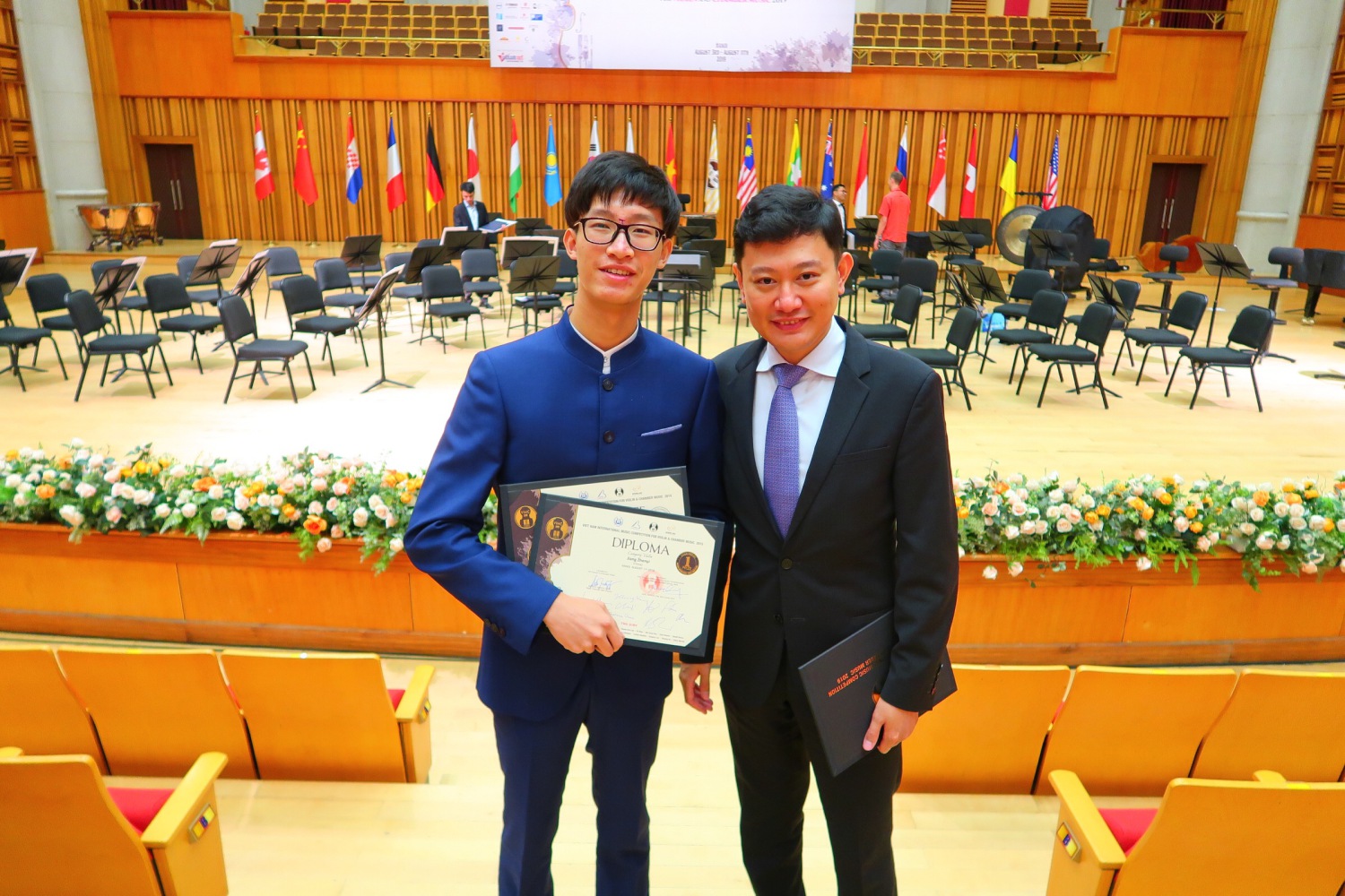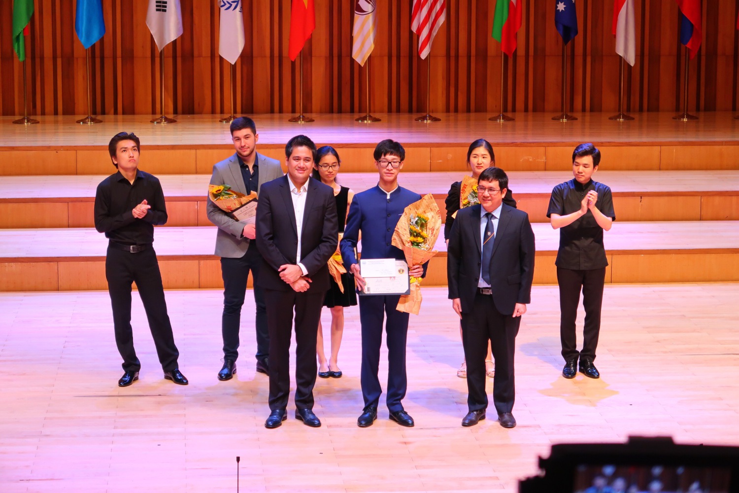 经过7天的激烈角逐,18岁的江枕毅同学在抽签第一号的情况下,发挥出色,成为唯一一名20岁以下的决赛选手。决赛中,他与越南SUN乐团合作演奏的柴科夫斯基协奏曲,获得评委们的一致认同!最终取得金奖(最高奖为特等奖),并获得评委会颁发的最年轻优秀选手奖!