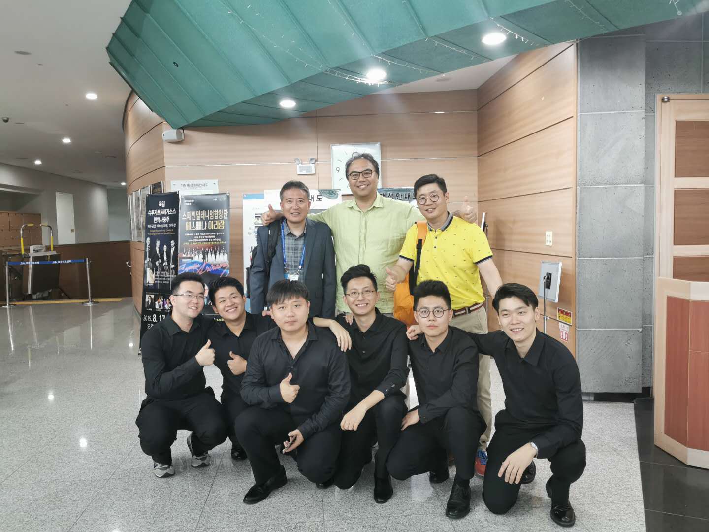 铜管五重奏三组决赛选手和铜管五重奏评委合影