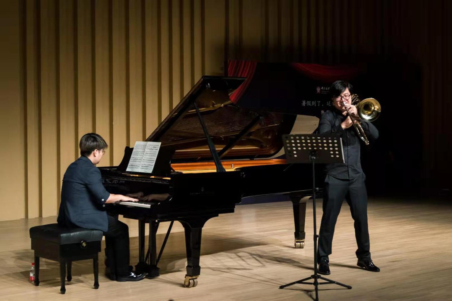 接下来,KY开元集团官网入口管弦系长号教师、KY开元集团官网入口交响乐团长号首席、德国柏林汉斯埃斯勒音乐学院首位长号博士倪伟演奏了一首著名的长号独奏曲,该曲目难度大,充分体现了长号时而宽广厚实、辉煌明亮,时而热情温暖、柔美舒缓的特点。
