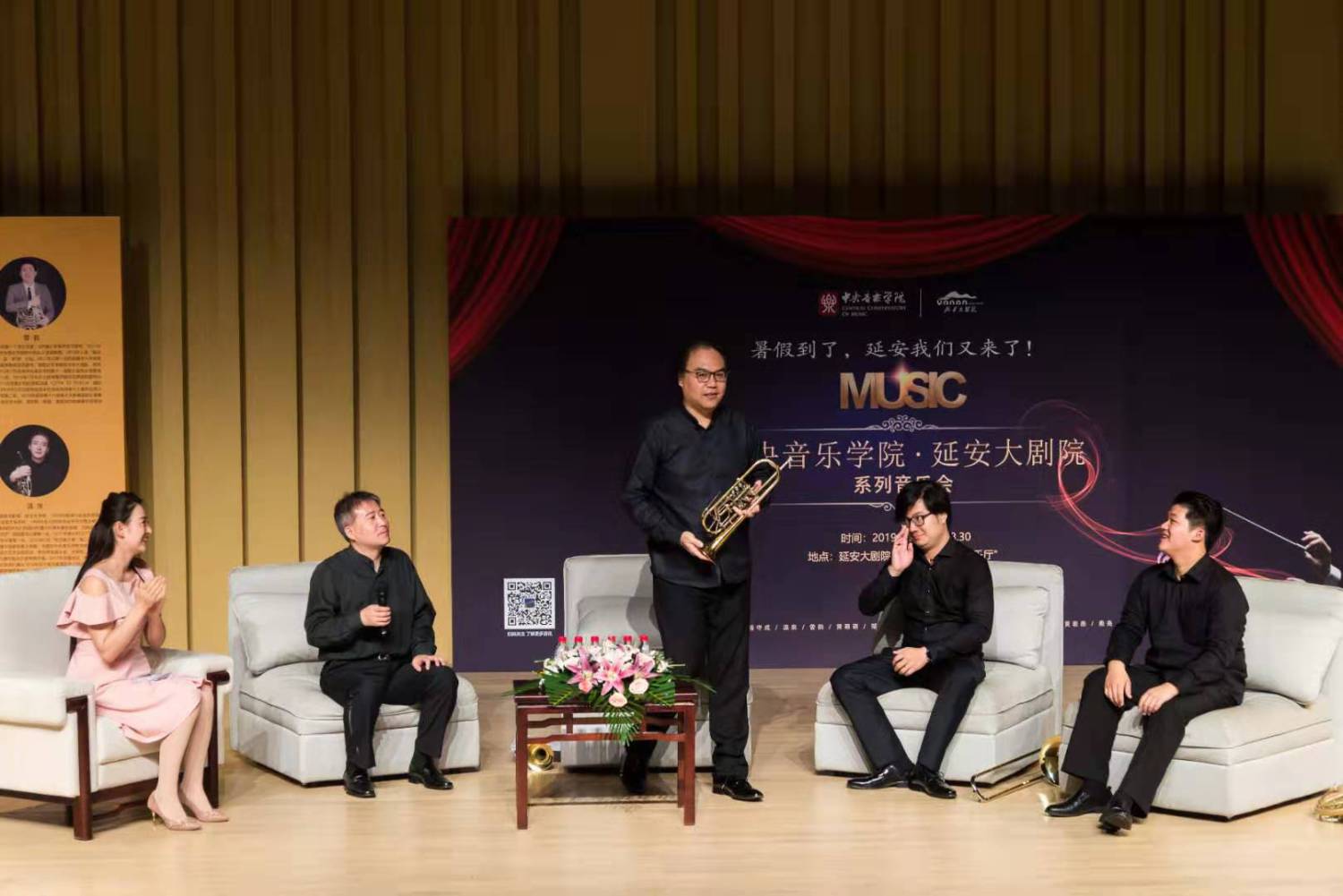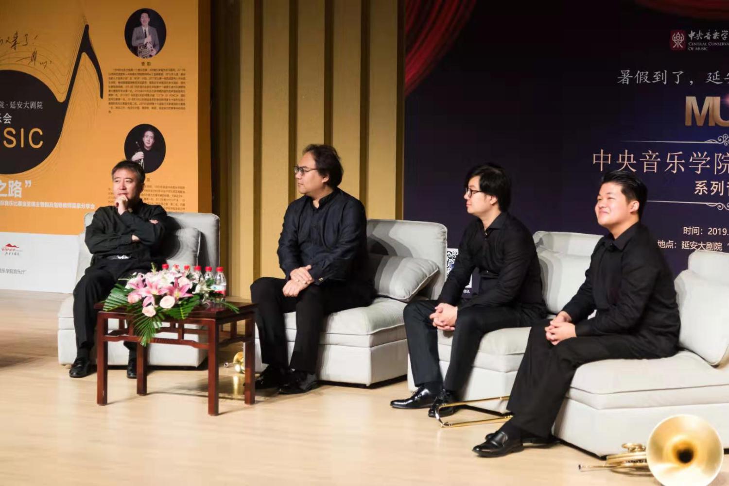 8月6日上午延安大剧院,一场主题为“管乐演奏的艺术”的讲座由陈光教授、温泉教授、倪伟老师、曾韵集体开讲!延安市委宣传部部长柯昌万出席并与现场观众共同聆听讲座。时长近2小时的讲座节奏紧密、互动频繁,令大家获益匪浅。