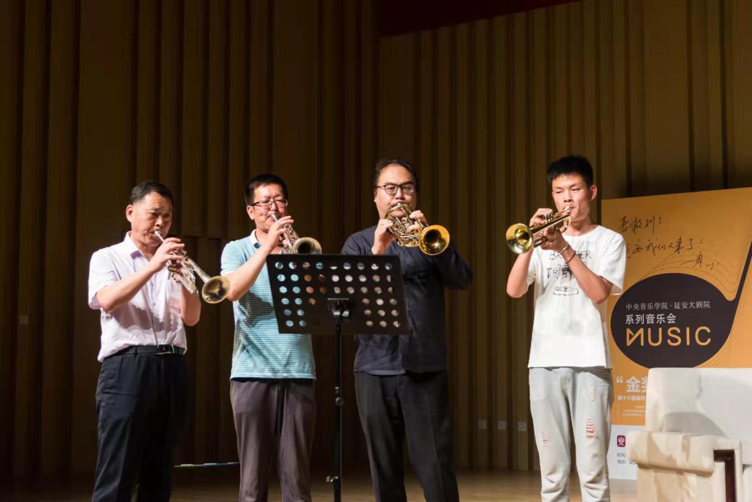 讲座特别邀请了近10名延安管乐演奏者现场表演,年龄涵盖20—50岁不等,他们非常珍惜这样宝贵的学习机会,以重奏、独奏形式将拿手曲目一一展示。陈光教授、温泉教授、倪伟老师、曾韵都被他们执着于音乐的精神所感动,肯定并鼓励他们继续保持对音乐的追求与热爱。随后,四位艺术家加入到他们的重奏乐团当中,通过示范演奏与技术讲解、现场排练的形式深入生动地进行指导,每个学员学以致用,现场演奏的细腻变化与进步赢得观众们一次次的精彩掌声。