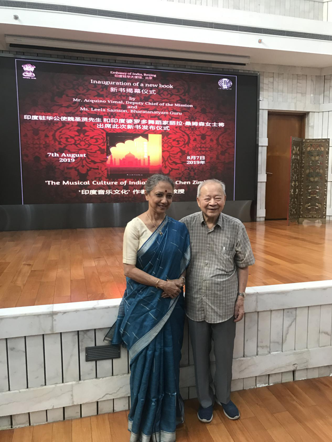 印度驻华公使魏圣贤先生、印度著名舞蹈家丽拉·桑姆森女士,为陈自明教授新书《印度音乐文化》揭幕