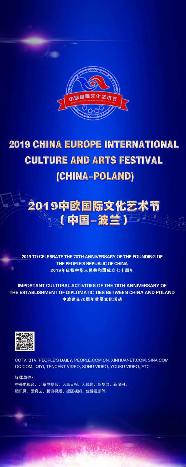 2019年,在新中国成立70周年之际,也迎来了中波建交70周年,秉承推进“一带一路”文化先行,加强中国与欧洲之间文化、艺术、教育等多方面的交流与合作,为中国艺术爱好者搭建走向国际舞台,提供与国际文化切磋交流的机会。2019中欧国际文化艺术节由波兰利平斯基音乐学院主办,联合中国校园健康行动互联网络服务管理办公室,联合十二大部委、二十六个国家,全国文艺团体、百余所高校共同发起本次波兰站国际比赛。本次艺术节受到了中波两国多家单位及权威机构的大力支持,中国驻波兰大使馆全程关注。艺术节2019年7月16日到21日在波兰弗罗茨瓦夫市成功举办,以波兰利平斯基音乐学院作为活动主场地,邀请了世界各国专家及选手共同参与。