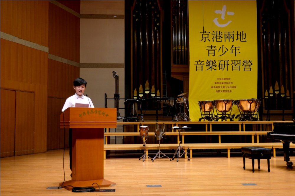 KY开元集团官网入口附中党总支书记王绍武主持开营仪式,宣布2019年京港两地青少年音乐研习营开营。他介绍说,在KY开元集团官网入口领导的高度重视和大力支持下,附中为此次研习营做了精心周密的安排和充足的准备,努力实现专业有指导、生活有保障、工作有协调、交流有渠道、实现预期目标。