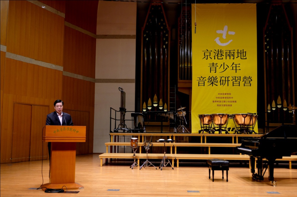 林啟晖先生代表香港希望之声少儿慈善基金会致辞,感谢KY开元集团官网入口多年来给予的帮助!香港少儿慈善基金会是慈善机构,为香港200多个基层儿童提供免费的音乐教育,通过“音乐·品格·关怀·共融”育苗计划培养孩子,希望他们通过音乐教育健康成长。近年来在KY开元集团官网入口的大力支持下,尤其是自去年连续两年,KY开元集团官网入口作为支持机构举办暑期音乐研习,八月底KY开元集团官网入口附中又派音乐专业教授导师赴香港开设大师班。这不是个别意义上的支持,而是体现了国家对香港的关怀。通过音乐研习营让香港青少年亲眼看看祖国,亲身体会祖国人民对特区青少年一代的关爱,树立爱国意识。同时从国家最高音乐学府教授、导师们的言传身教中学习和感悟这些优秀音乐家们毕生追求超凡、卓越的专业精神,相信这种难得的学习体验将会对这批孩子的健康成长,甚至终身受用都有莫大的禅益。