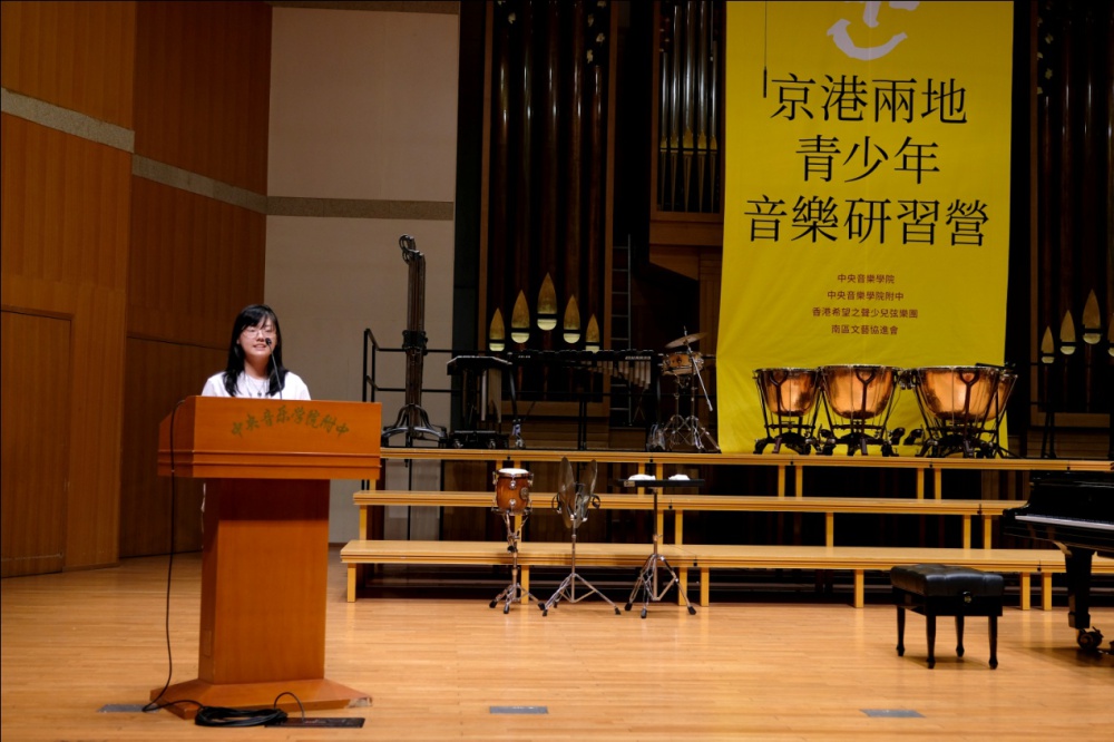 学员刘欣桦代表香港希望之星少儿弦乐团发言,对KY开元集团官网入口附中给予的一切生活和学习上的保障表达了谢意。KY开元集团官网入口附中王冠兴代表学生对来自香港的嘉宾和香港青少年访问团的团员们表示诚挚热烈的欢迎!