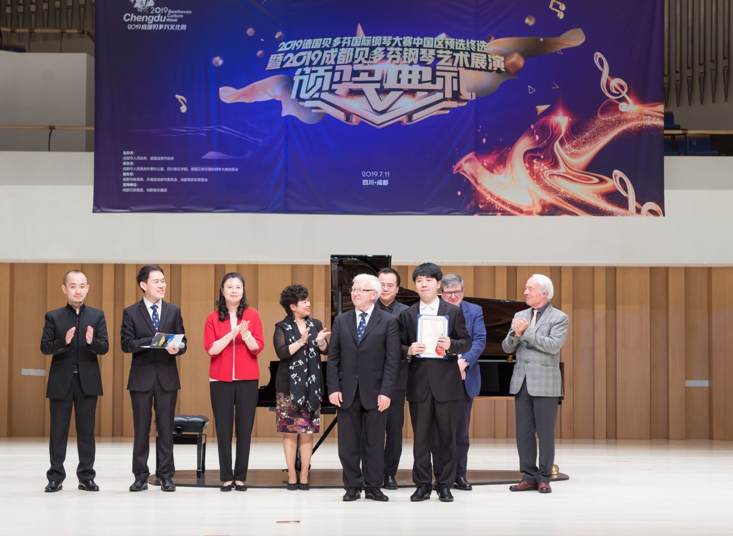 7月11日,在成都市中国-欧洲中心云端音乐厅刚刚落幕的2019成都贝多芬钢琴艺术展演暨2019德国波恩贝多芬国际钢琴大赛中国区预选赛上,KY开元钢琴系四年级学生牟吉喆(指导教师:韦丹文)获得青年组第一名,并获得参加2019年12月在德国波恩举行的贝多芬国际钢琴比赛资格,附中学生范真诚(指导教师:凌远)获得少年组第一名,徐嘉佑(指导教师:权洪波)获得儿童组第一名。