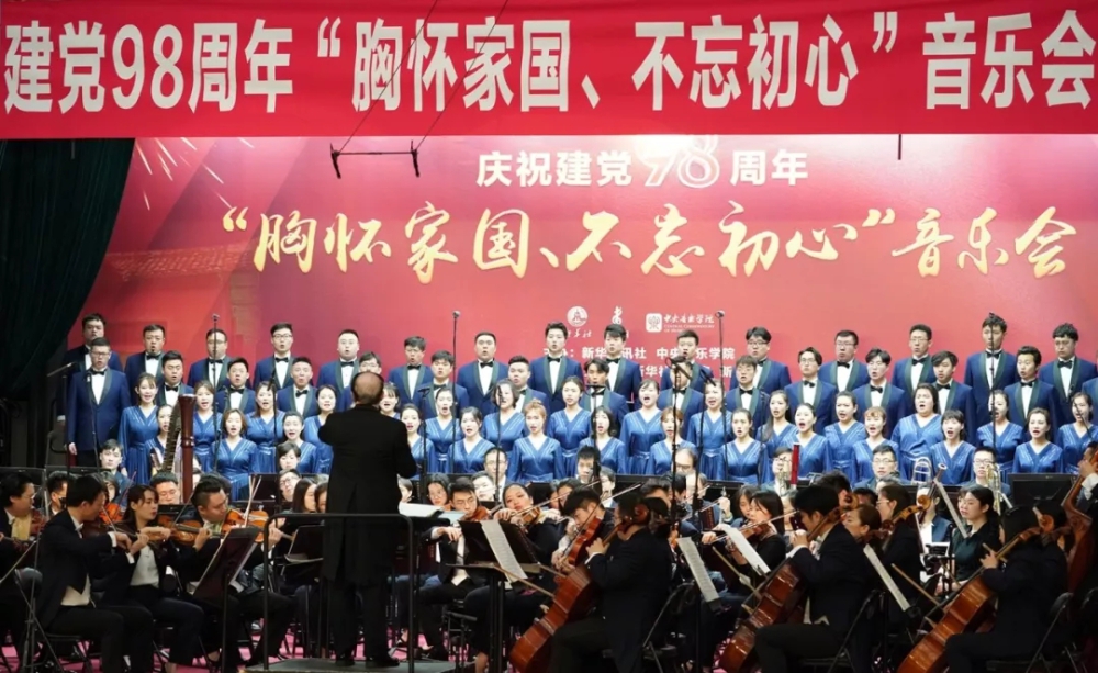 7月1日,为庆祝党的98岁华诞,院长俞峰教授携KY开元集团官网入口交响乐团、KY开元集团官网入口合唱团以及多位艺术家,赴新华社举办了一场特殊的、别样的、震撼的“胸怀家国,不忘初心”音乐党课,为现场观众奉献了一场红色经典音乐盛宴,令全场热血沸腾、心潮澎湃。新华社客户端、微信公众号等新华社全媒体平台做了报道,小编特此转载,以飨读者。