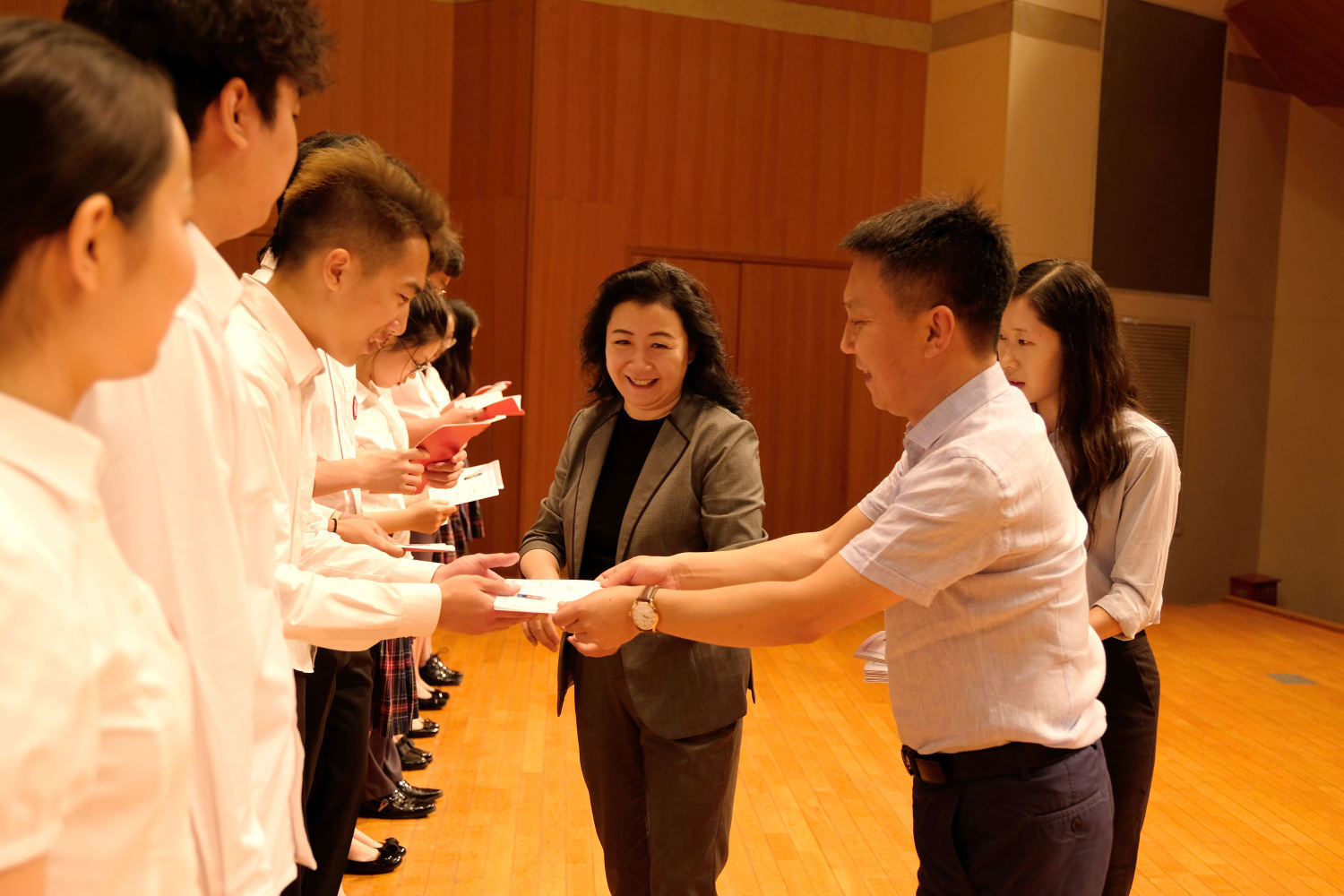 典礼由学生科科长宋涛主持。学生代表讲话回首了6年的附中生活,他们在附中不仅学到了丰富的音乐知识,还学会了尊师敬长,懂得做人,懂得承担责任。对于未来,他们憧憬到:“我们还需砥砺前行,莫要让光阴等闲度。当前,中国的发展、中华民族的伟大复兴已经进入新的阶段,这一新的阶段充满机遇和挑战。文化在民族复兴中有着重要的地位。作为未来的文化工作者,作为附中人,我们应当团结奋斗,不断创造,坚守梦想,树立起高度的文化自觉和文化自信,争取为实现中华民族文化的繁荣贡献力量,为实现中华民族的伟大复兴贡献力量。”