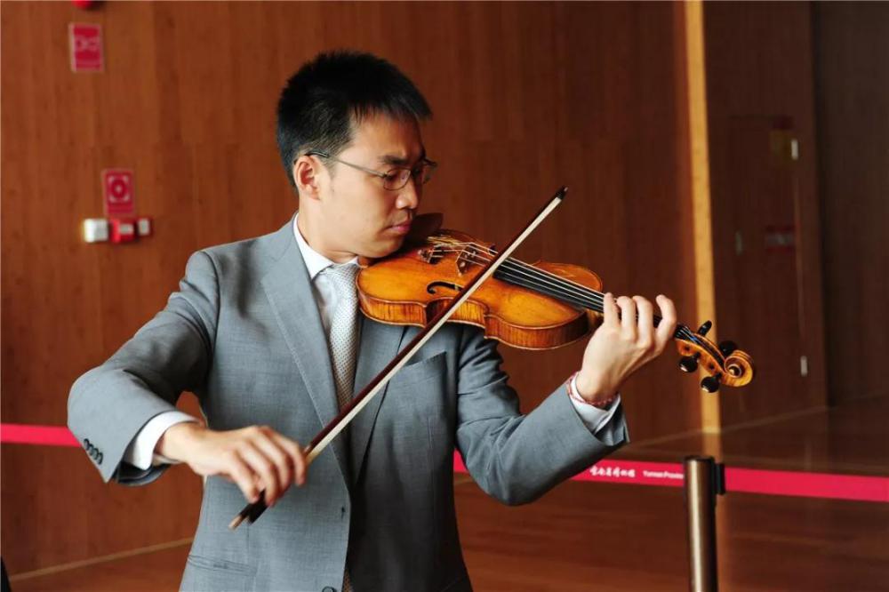 高参老师用他珍藏的古董小提琴(1617年制)演奏《义勇军进行曲》
