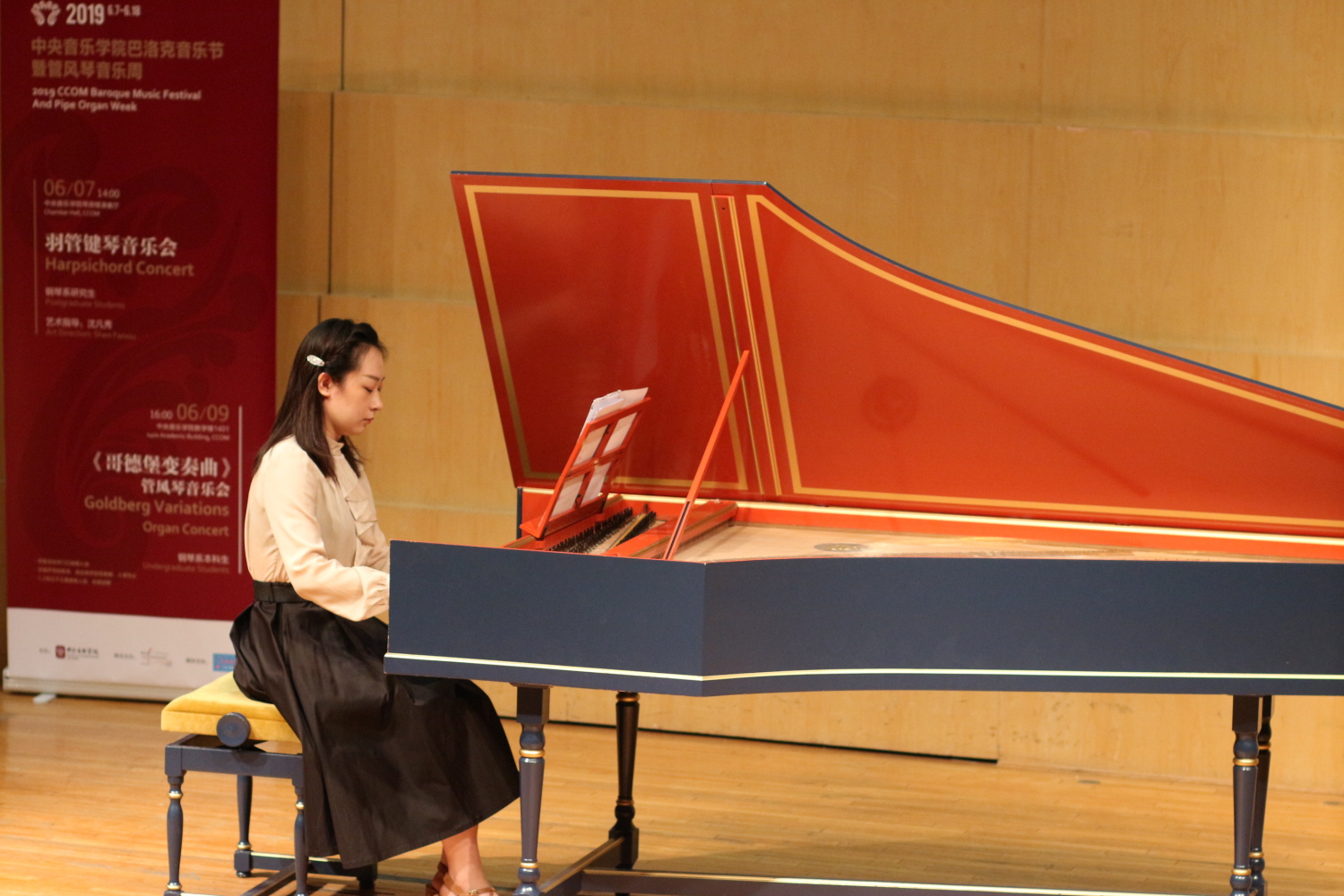 在琴房楼演奏厅举行羽管键琴音乐会,由跟随沈凡秀学习羽管键琴演奏的钢琴专业研究生丛榕、李晗、金惠珍和陈曼演奏巴赫和斯卡拉蒂羽管键琴作品。