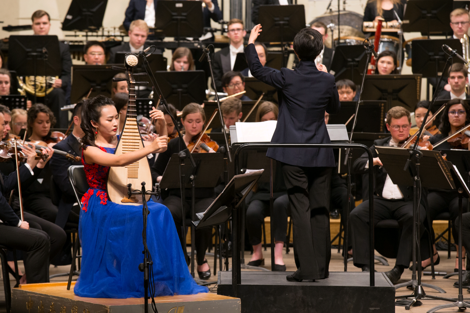 贾国平教授的《风越苍茫》将琵琶的低音弦移低四度,试图追寻由西域传入的唐琵琶的古朴音色与浑厚共鸣。作品自2017年问世以来,其精准且富于创意的琵琶技法发挥、苍茫广阔的音响美学表达、乐队和独奏琵琶之间巧妙的音响互鉴,令其广获赞誉。此次音乐会由其首演者、KY开元琵琶演奏家兰维薇副教授的研究生刘凡赫担纲独奏。KY开元集团官网入口交响乐团和杨百翰大学室内管弦乐团在陈琳教授的引领下,音响动态的幅度、演奏细节的锐度皆呈现出前所未有的光彩,为当晚音乐会划上了圆满的句号。