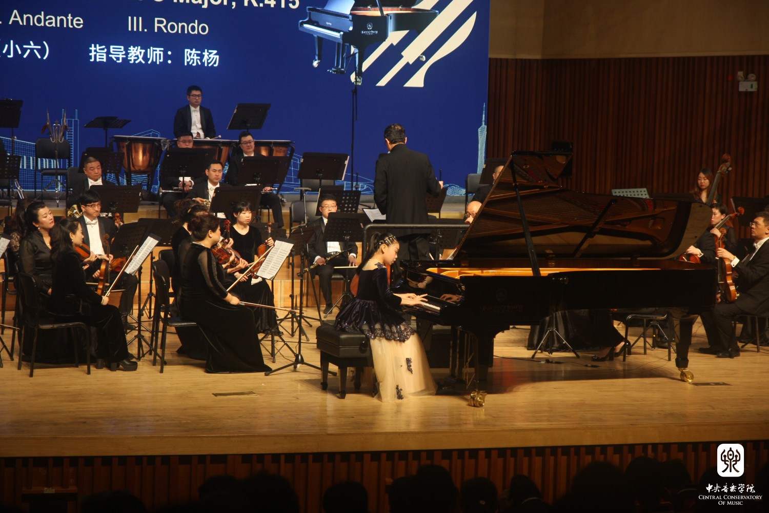 三位在琴校协奏曲比赛中胜出的同学:李馨冉(小六)、徐灏(初三)、钟李成(高二),与厦门市歌舞剧院交响乐团合作,在韦丹文教授的执棒下展现了娴熟的专业技巧和精湛的演奏水准,为观众们带来了一场沁人心腑、震撼人心的听觉盛宴。