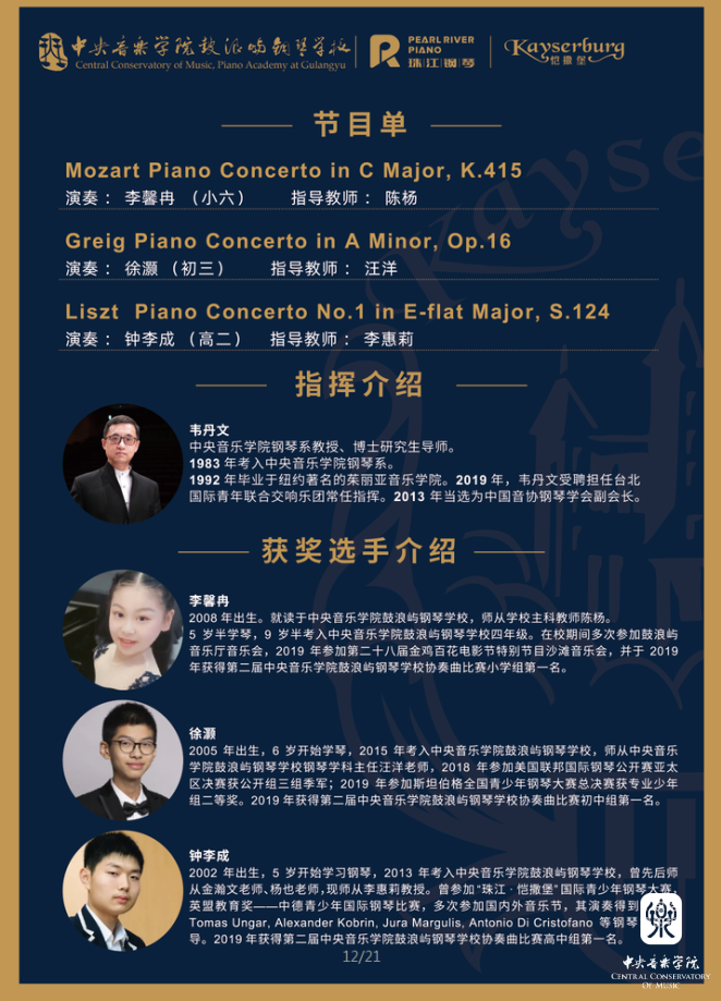 钢琴协奏曲比赛暨2019“珠江•凯撒堡”奖学金钢琴比赛获奖选手音乐会