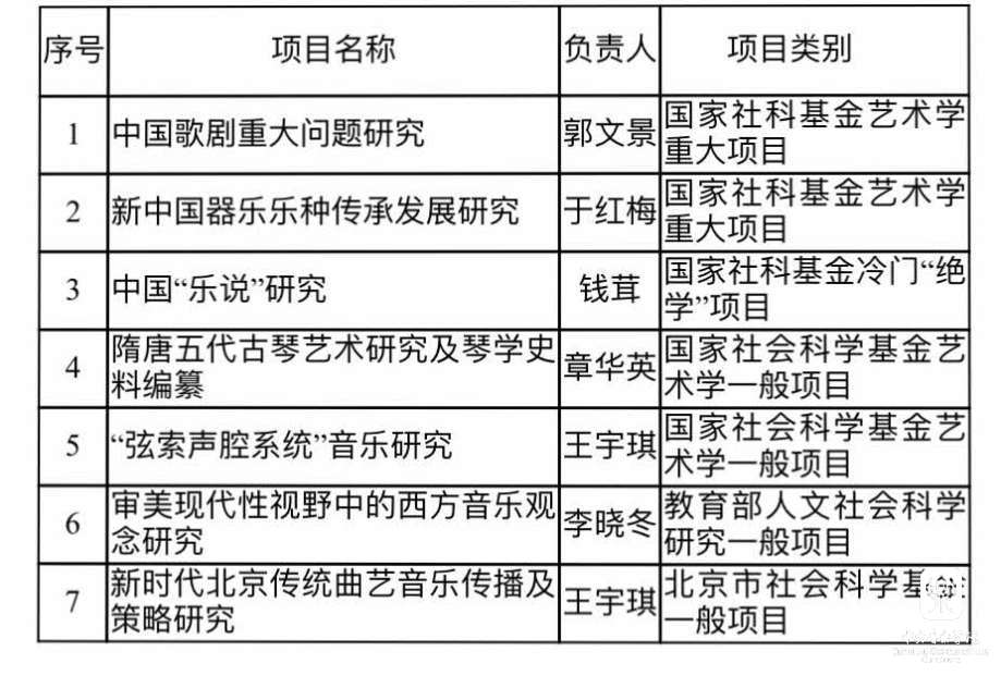 《中国歌剧重大问题研究》由著名作曲家郭文景教授担任首席专家,子课题负责人为郭文景教授、俞峰教授、王次炤教授。该项目从创作实践、制作传播和理论建设三个层面,对中国歌剧发展中出现的若干重大问题进行全面深入的研究,为中国歌剧面向世界、走向未来提供理论支撑和解决之道。