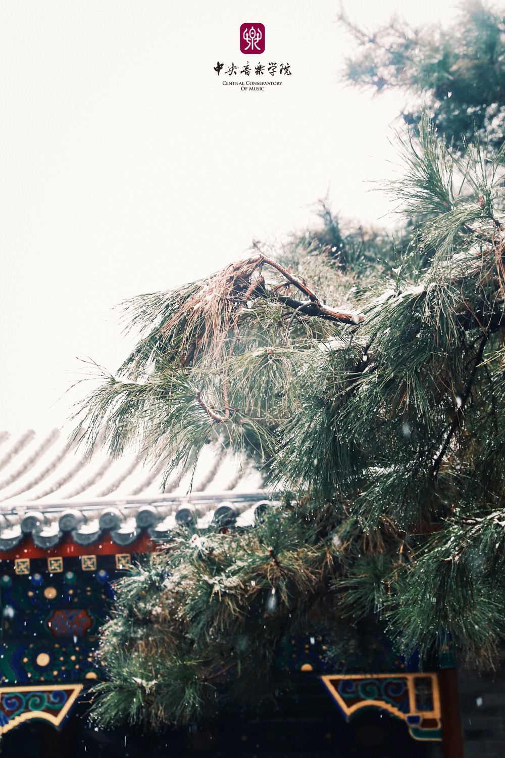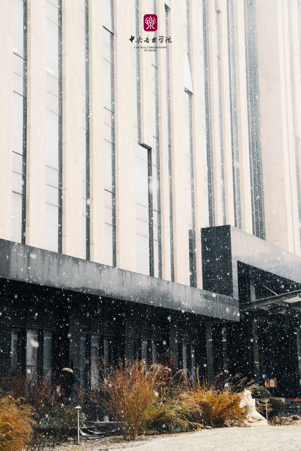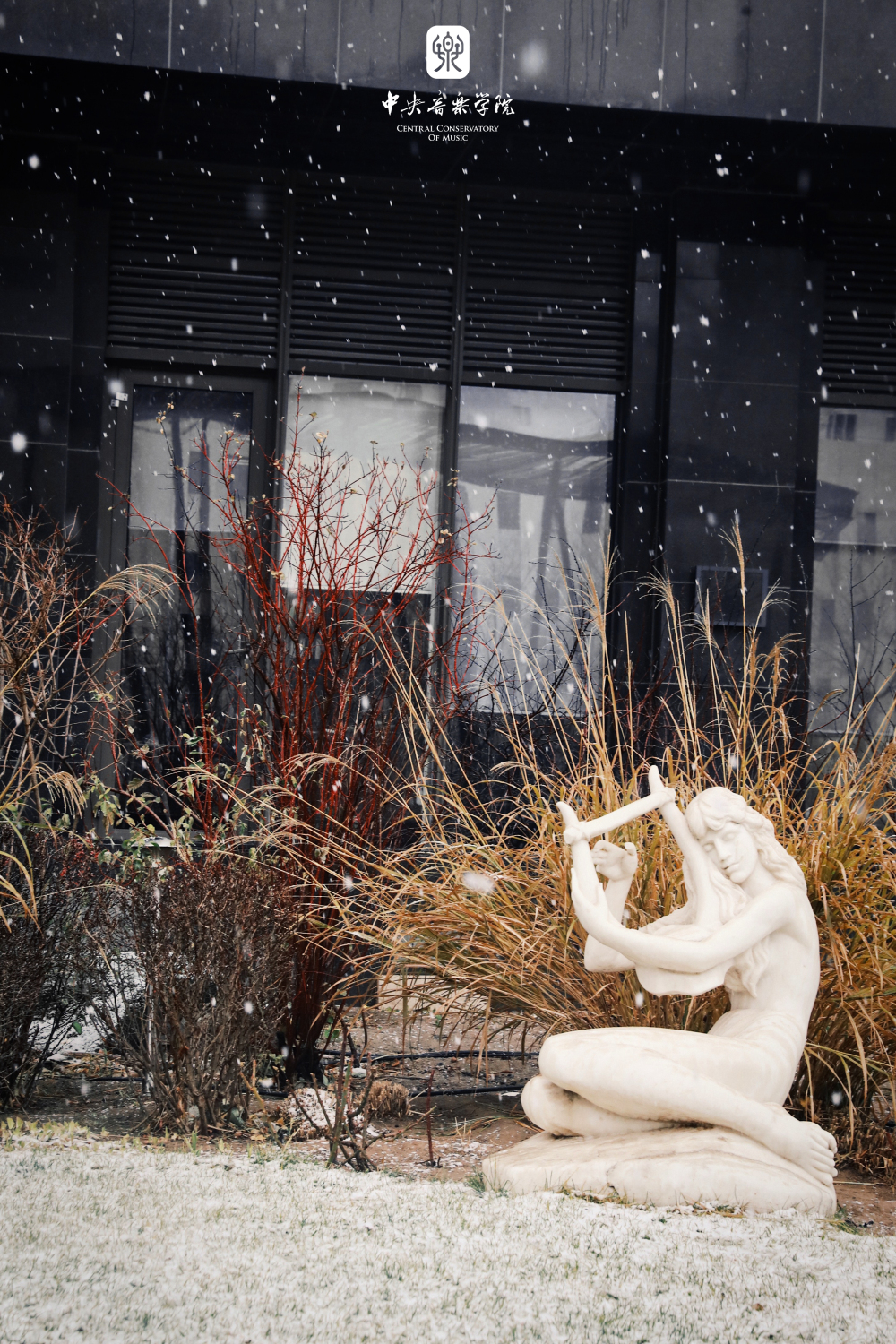 冬日的央音在纷纷扬扬的雪花中美得静谧而深沉