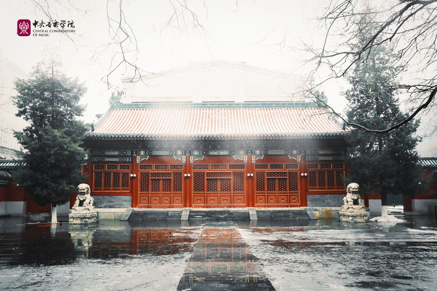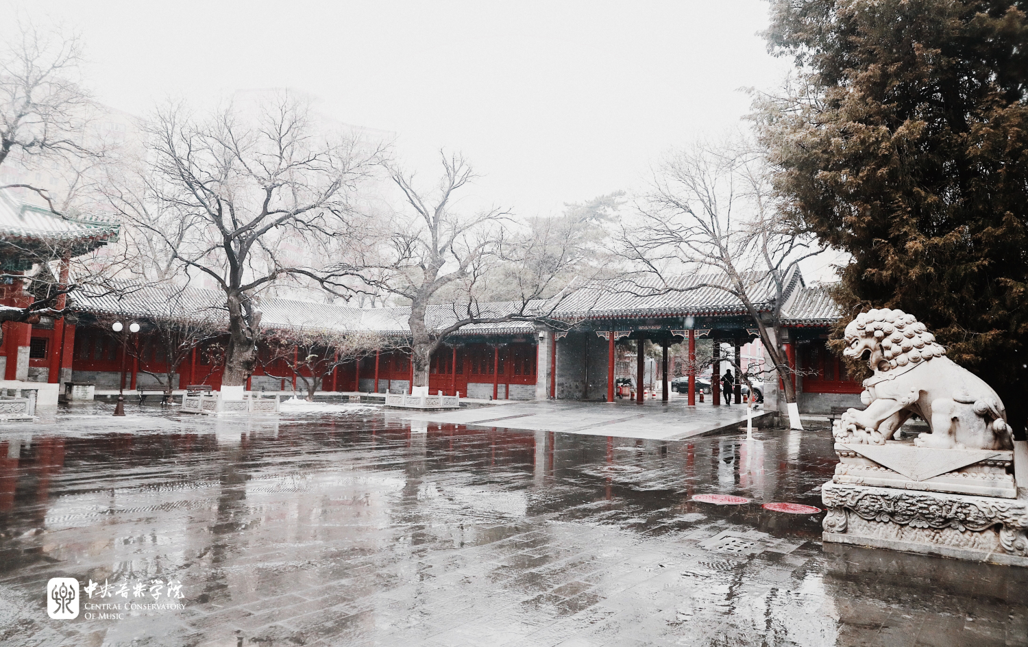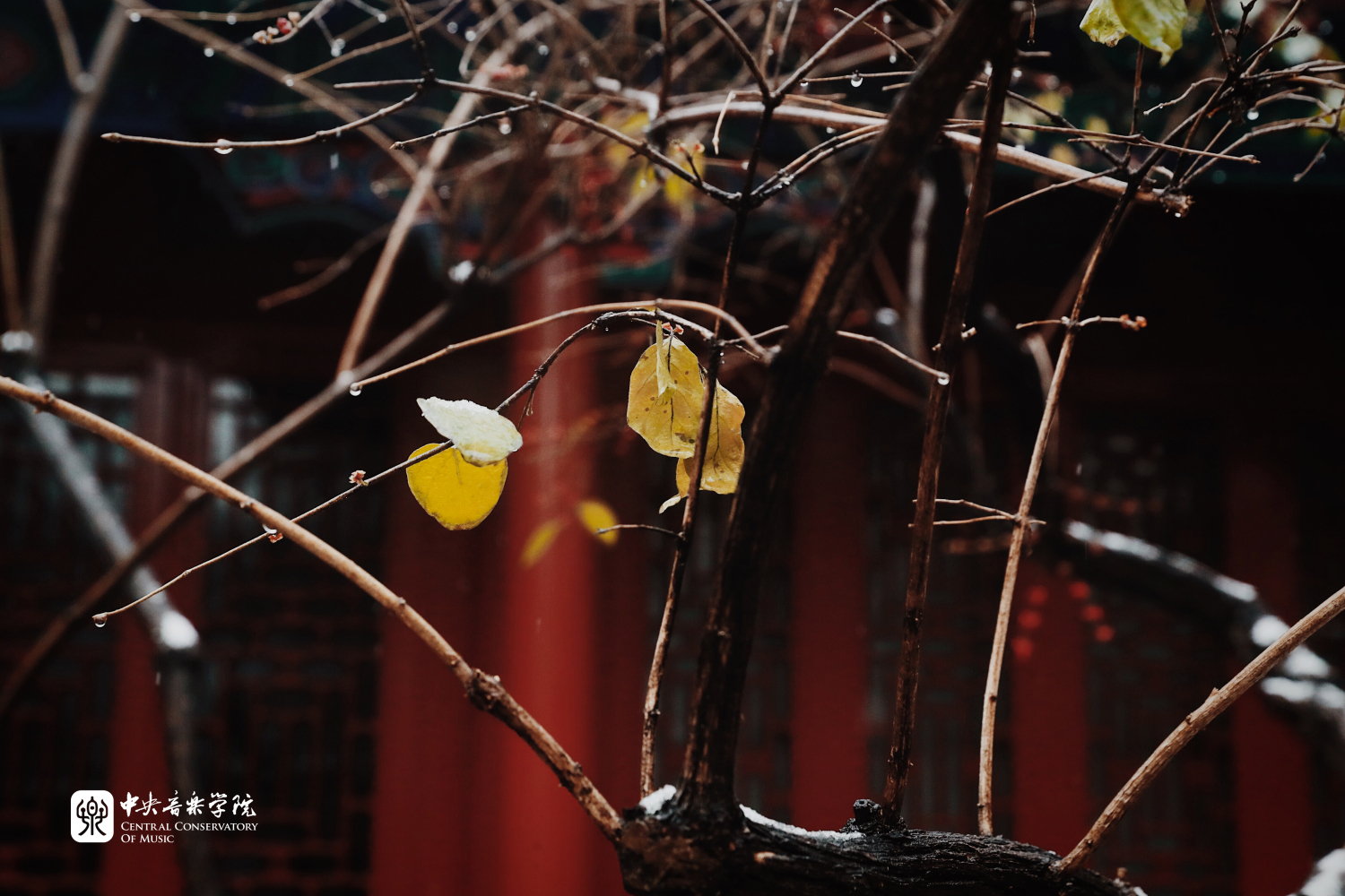 冬日的央音在纷纷扬扬的雪花中美得静谧而深沉