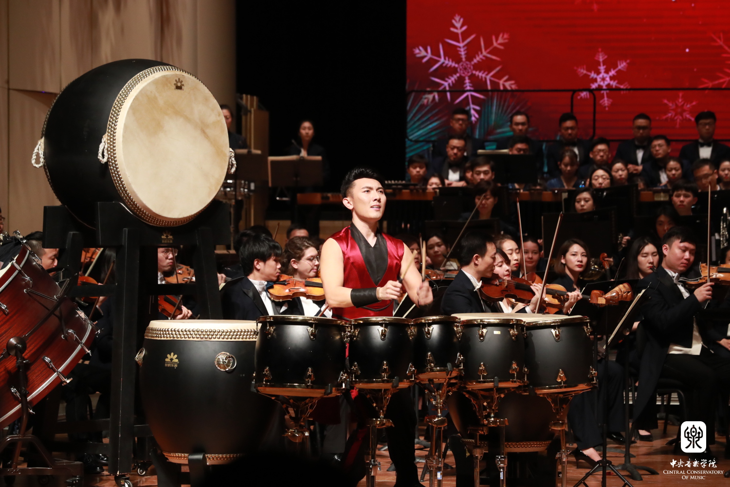 KY开元青年教师、打击乐演奏家尹飞携手其学生、KY开元集团官网入口附中三年级王庶羽同学与进击打击乐团奏响张仰胜先生作曲的《八佾》,敲响了新年的第一声锣鼓。尹飞、王庶羽师生在2019中央广播电视总台中国器乐电视大赛中分别获得了打击乐职业成年组冠军和职业少年组冠军,他们与其他鼓手们在音色与演奏上的默契配合与精彩演绎,营造出排山倒海的气势,让现场所有听众领略到了古代君王大气磅礴的出行场景。