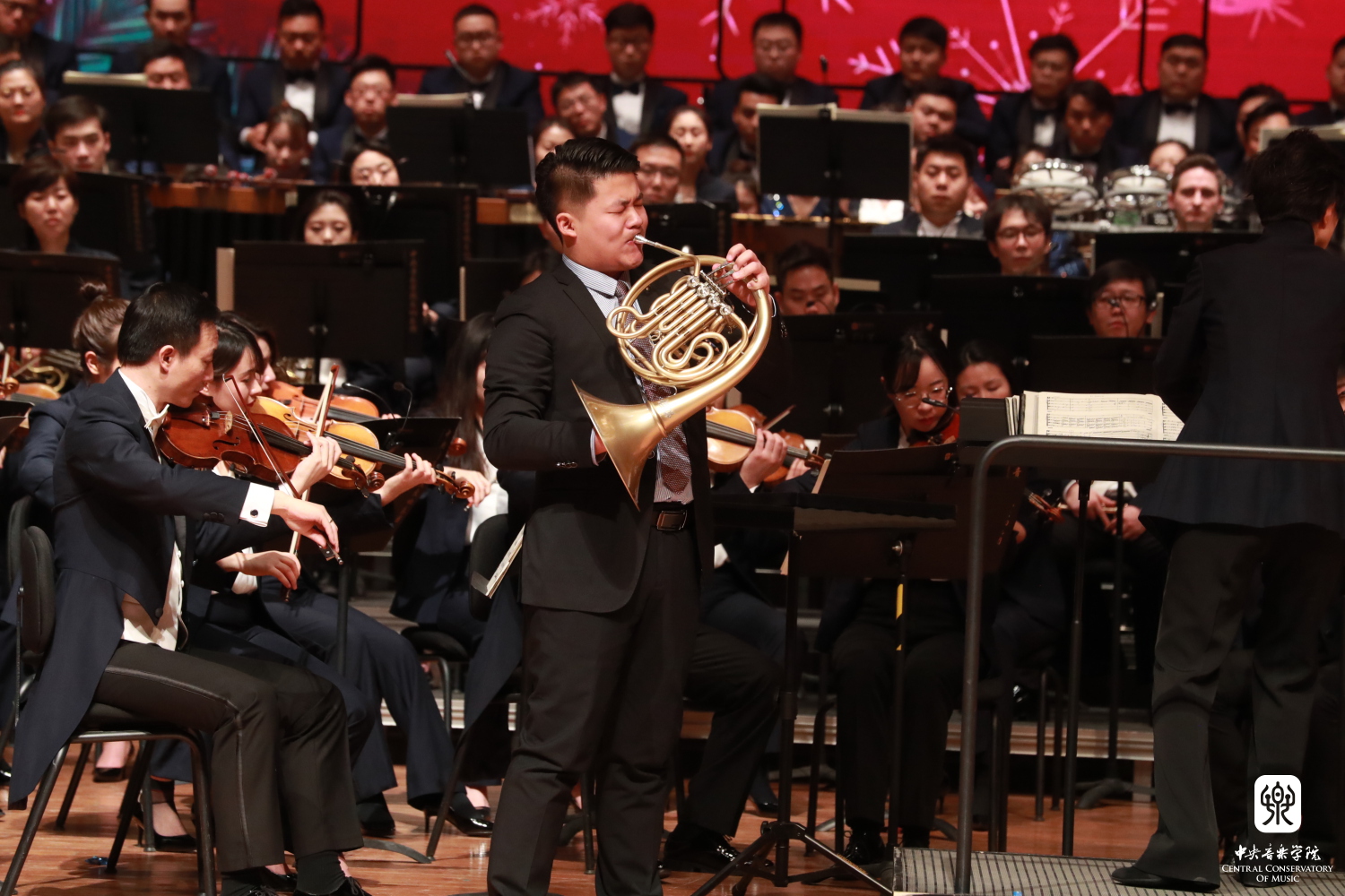 悠扬宽广的圆号声悄然响起,获得2019年第16届柴可夫斯基国际音乐比赛铜管组金奖的曾韵(指导教师:温泉)为现场带来了路易吉·凯鲁比尼的《第二圆号协奏曲》,在现场,曾韵饱满平稳的气息、扎实的技术功底让大家领略到铜管专业世界冠军的风采。他的获奖被俄罗斯指挥家捷杰耶夫称为“最大的惊喜”,也刷新了中国管乐的历史。