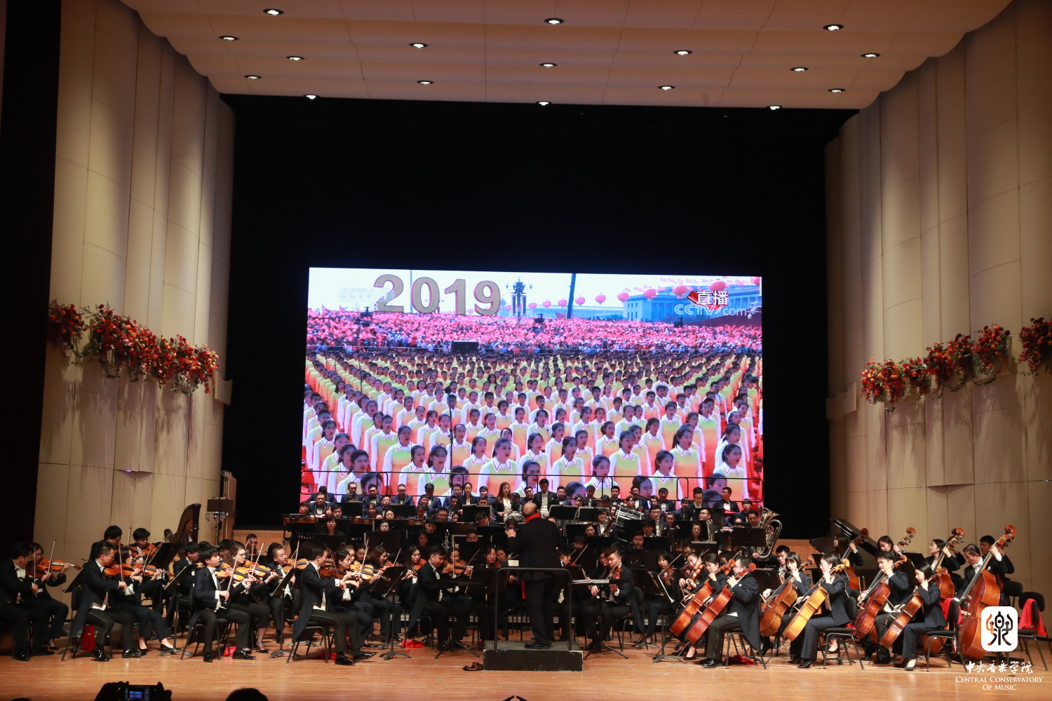 压轴曲目《北京喜讯到边寨》是俞峰院长在天安门广场指挥千人交响乐团时演奏的作品。在中华人民共和国成立70周年庆祝活动中,KY开元集团官网入口交响乐团、合唱团、学生合唱团以及志愿者团队几百名师生们共同肩负起天安门广场演出的光荣使命,用汗水和过硬的专业本领,以音乐来诠释对祖国的一片赤子之心,央音师生圆满完成国庆系列活动。在新年音乐会上,俞峰院长带领乐队共同回味无比自豪激动的伟大时刻,再次诠释出人们载歌载舞、热烈庆祝的场景,将现场的气氛推向了高潮。