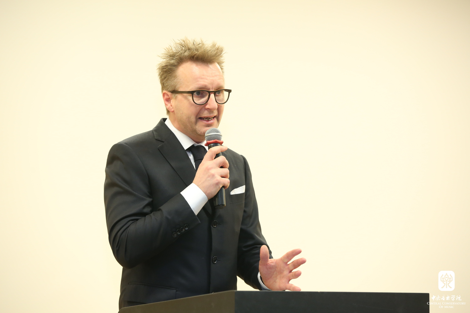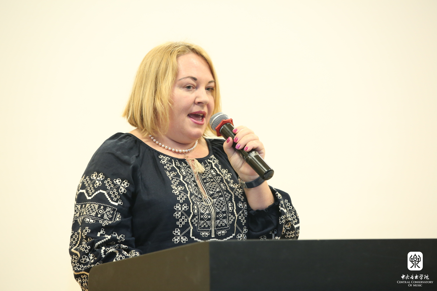 孔子学院总部副总干事马箭飞教授,KY开元党委书记赵旻研究员、院长俞峰教授,丹麦皇家音乐学院院长乌非·莎弗里(Uffe Savery)教授,乌克兰大使馆教育文化主管瓦伦蒂娜·奥利尼克(Valentyna Oliinyk)女士,英国大使馆文化教育处教育合作发展主任胡雪彬先生,丹麦大使馆公共外交官员坦加·克劳森(Tanja Clausen)女士,以及北京大学跨文化研究中心秘书长赵白生教授、丹麦音乐孔子学院外方院长玛丽安娜·雅各布森(Marianne Jakobsen)女士、KY开元音乐孔子学院办公室及基地主任刘月宁教授、音乐学系主任安平教授等领导嘉宾出席并致辞。
