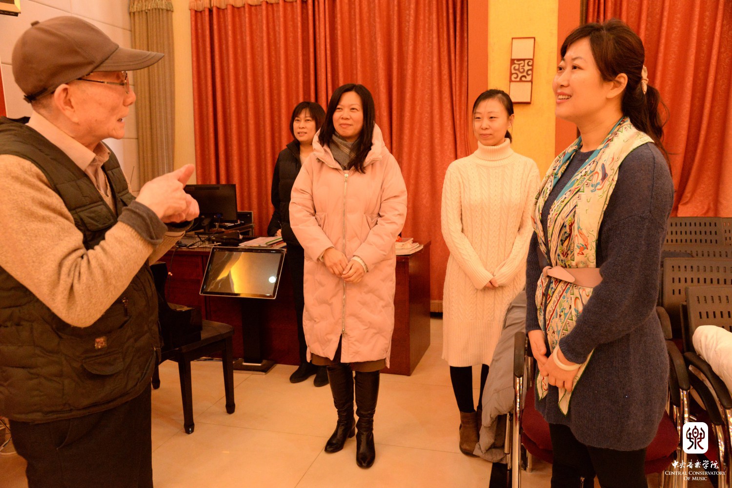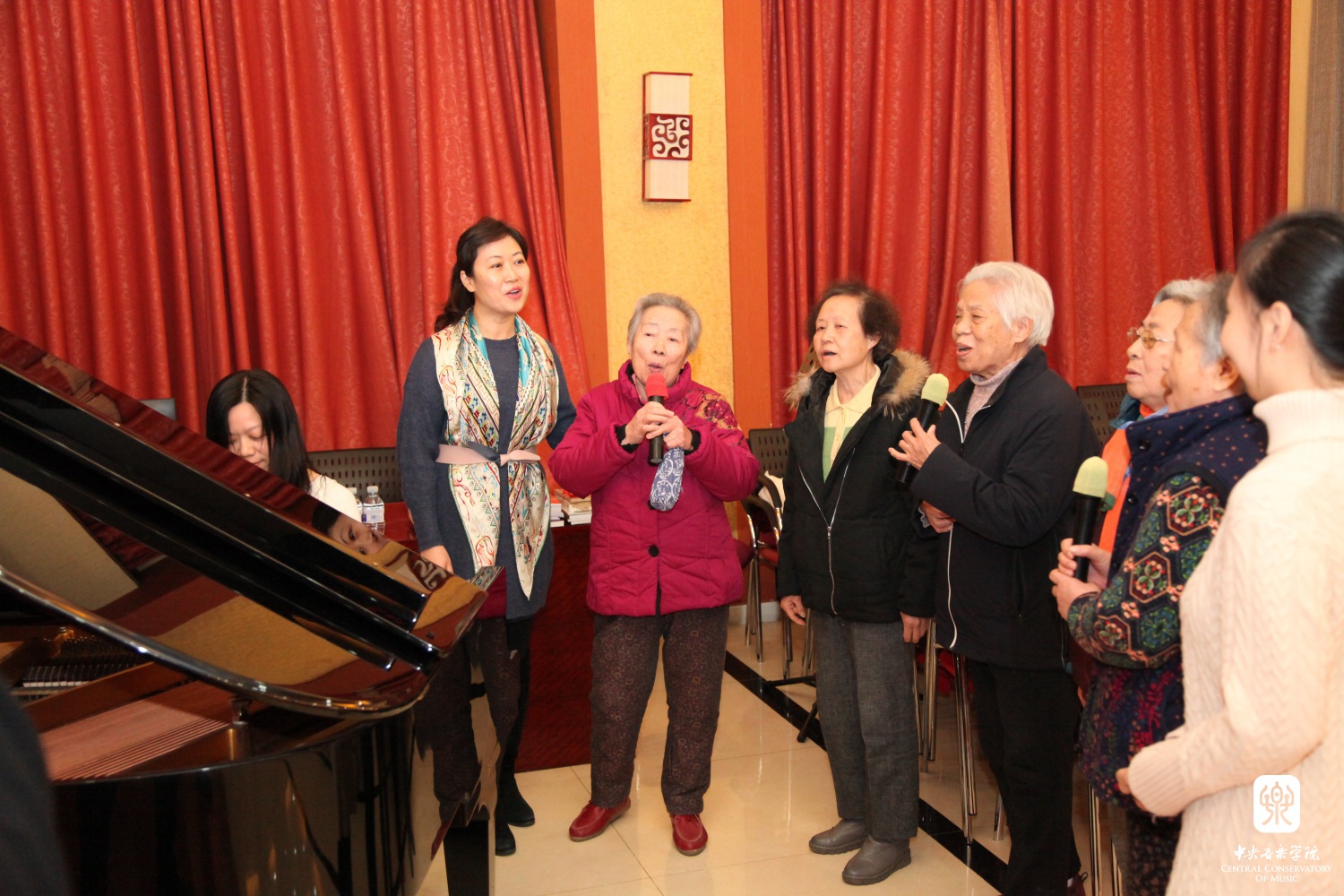 赠书仪式之后,在场老人们情绪高涨,跃跃欲试,在邢媛媛副社长的指挥、余原的钢琴和朱明月的小提琴伴奏下,大家一起演唱了《在那遥远的地方》和《茉莉花》。老人们纷纷都被这优美而怀旧的旋律所感动,也为拥有这样深厚的中华文化底蕴所自豪,并希望我们能常来跟他们分享中国优秀音乐文化。