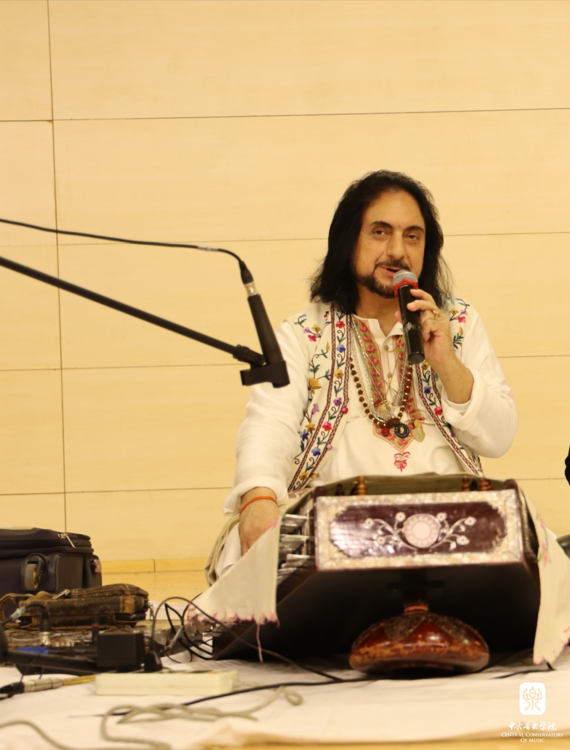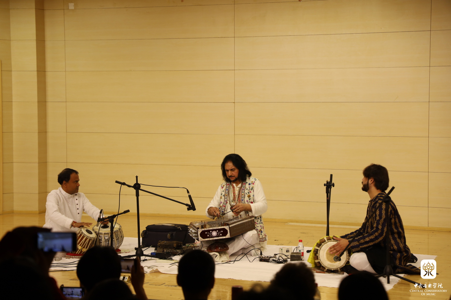 索波里大师从印度扬琴到印度古典音乐,与观众们进行了分享和交流,印度帕卡瓦吉鼓演奏家萨尔曼以及KY开元外聘教师、塔布拉(Tabla)鼓演奏家萨瑞特·达斯(Sarit Das)与大师共同演绎。当晚演奏两首拉格,第一首名为Kaushik Ranjani的晚间拉格,乐曲符合演出的时间与情境,期间大师带领全体观众吟唱部分旋律,加深了观众对于音乐的感受;第二首名为Kaushik Kanada的拉格,由三种不同的节奏圈(Tala)伴随演奏。音乐最后在渐强、渐快的Jhala中结束,将整晚气氛推向高潮,观众反响热烈,惊叹大师“魔术般”炉火纯青的高超技艺!在最后的问答环节观众还就具体问题进行了提问,进一步加深了观众对于印度音乐的深入理解。