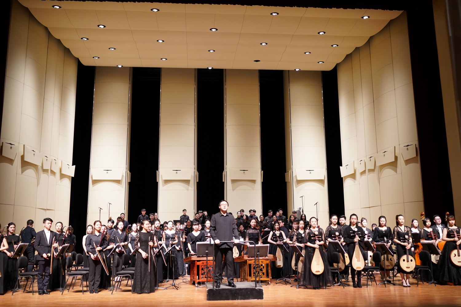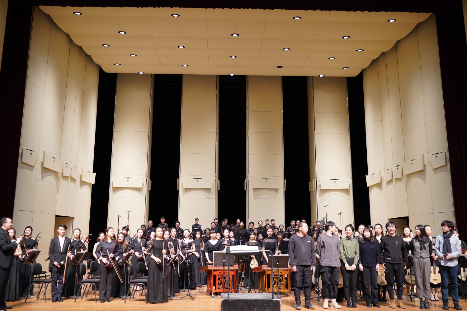 这场音乐会贯彻了李滨扬教授《中国民族乐队写作与文献分析》课程的教学理念,中国久远而积累下来的深厚的民族文化传统,给了后人不断探索和前行的方向,青年作曲者也在中国民族乐队写作上不断突破、不断探索,追求创新。今晚新作品创作的方向和努力的成果,可以看出这些青年作曲者们在民族管弦乐创作中做出的有益尝试以及他们对当下民族管弦乐创作新方向、新思路的思考。这是我们民族音乐发展历程中的一个阶段,是一个能够以教学相长,共同进步的必由之路。在未来发展的道路上,祝愿这些出色的青年作曲者们在日后创作出更多的作品,不断突破创新。