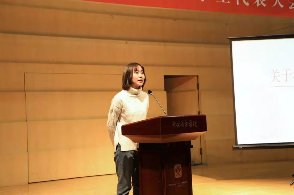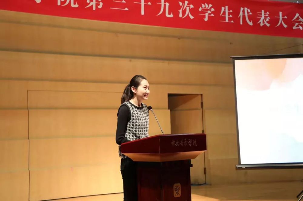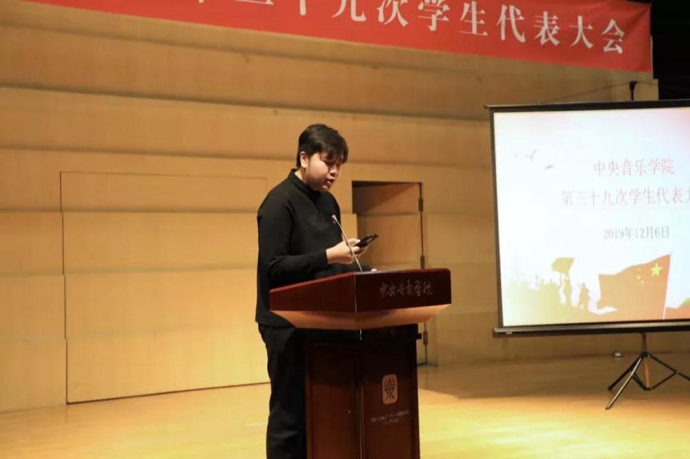 随后进行的是第三十九届学生会委员选举环节。本次本科生代表大会应到代表81人,实到代表74人;实到代表人数超过应到代表的2/3,符合规定要求,可进行选举。委员候选人共有10人,本次代表大会要从中选出8人作为第三十九届学生会委员。这10名候选人分别为:作曲系尉港垣、张导正,音乐学系郑一迪、孙金田,音乐教育学院林鋆,钢琴系袁金晶,民乐系申依靖、刘艾禾,声歌系李子贤,音乐人工智能与音乐信息科技系劳怀瑀。以上委员候选人依次进行了竞选演讲。