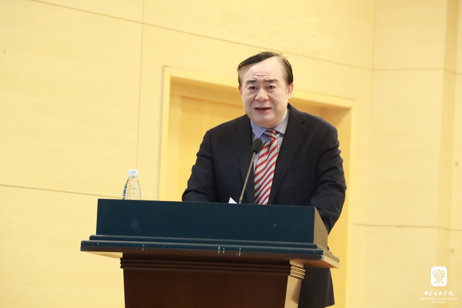 俞峰校长在讲话中回顾了2019年的工作。他从“守初心、担使命,立德树人根本任务落到实处”;以“双一流”为统领,用新理念书写新篇章,不断开拓央音发展新境界;自觉肩负起新时代的使命,主动服务国家战略和社会需求;办学条件及民生明显改善,四个大的方面总结了2019年学校各项事业取得的显著成绩和呈现出的快速健康发展的良好态势。