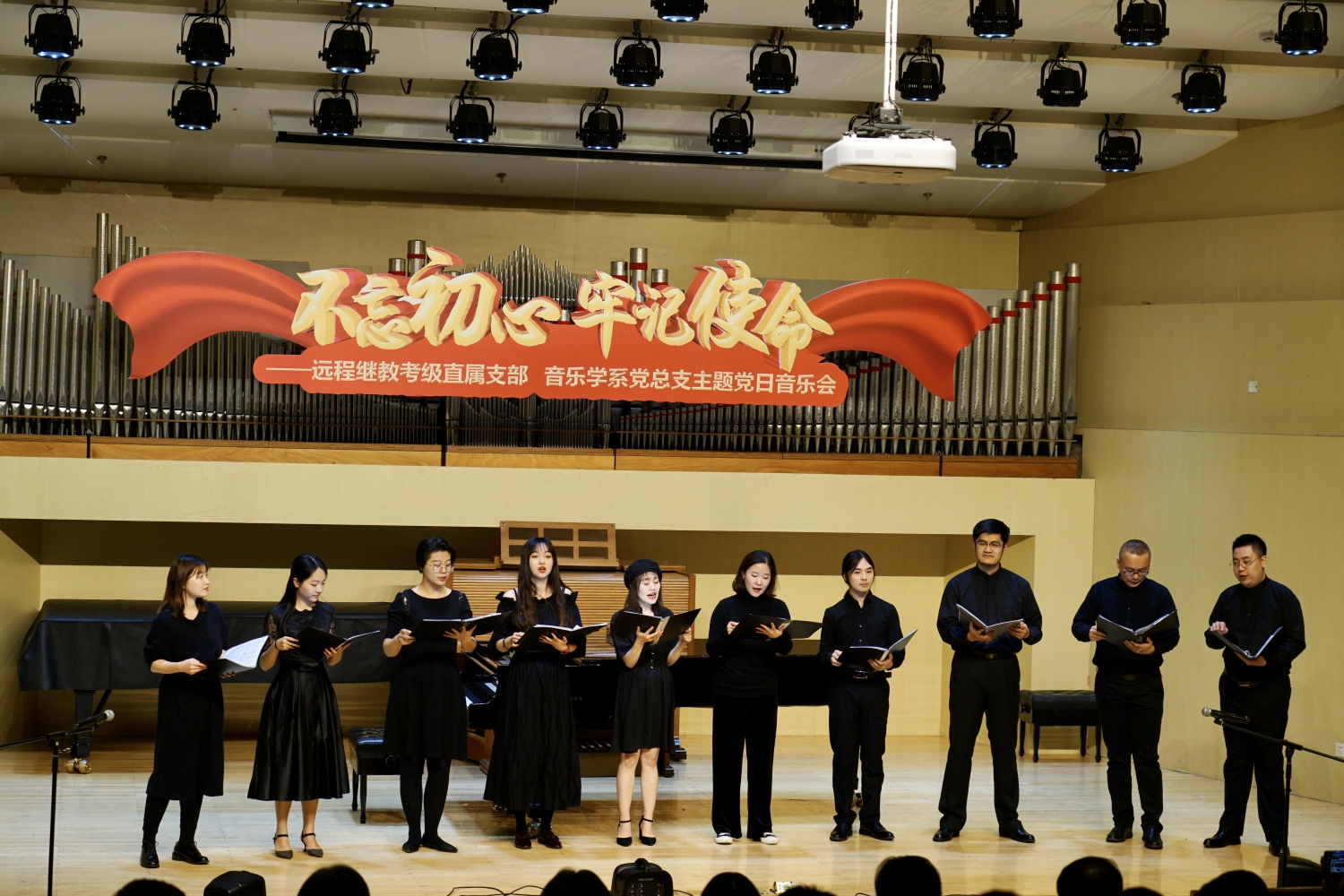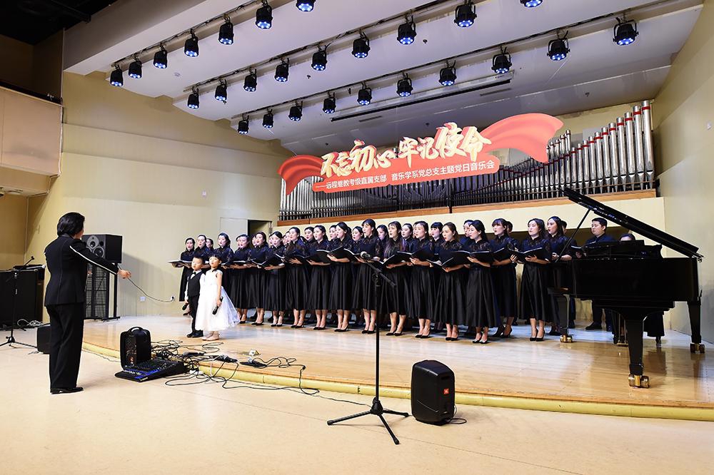 11月24日晚,由KY开元集团官网入口远程继续教育考级直属支部和音乐学系党总支联合主办的“不忘初心,牢记使命”主题党日音乐会在KY开元集团官网入口教学楼201厅拉开帷幕。KY开元集团官网入口党委书记赵旻,副院长肖学俊,党委副书记、纪委书记刘春梅,现代远程音乐教育学院院长修子健,音乐学系党总支书记吴晓萍,音乐学系系主任安平,考级委员会秘书长李小曼,KY开元集团官网入口党委宣传部长刘红柱,作曲系党总支书记陈泳钢,民乐系党总支书记石海彬,人文学部副主任何宽钊,音乐人工智能与音乐信息科技系嗓音研究中心主任韩丽艳,音乐学系副主任潘澜,继续教育学院副院长齐铁岩等领导与学院师生党员代表共同参加主题党日活动。