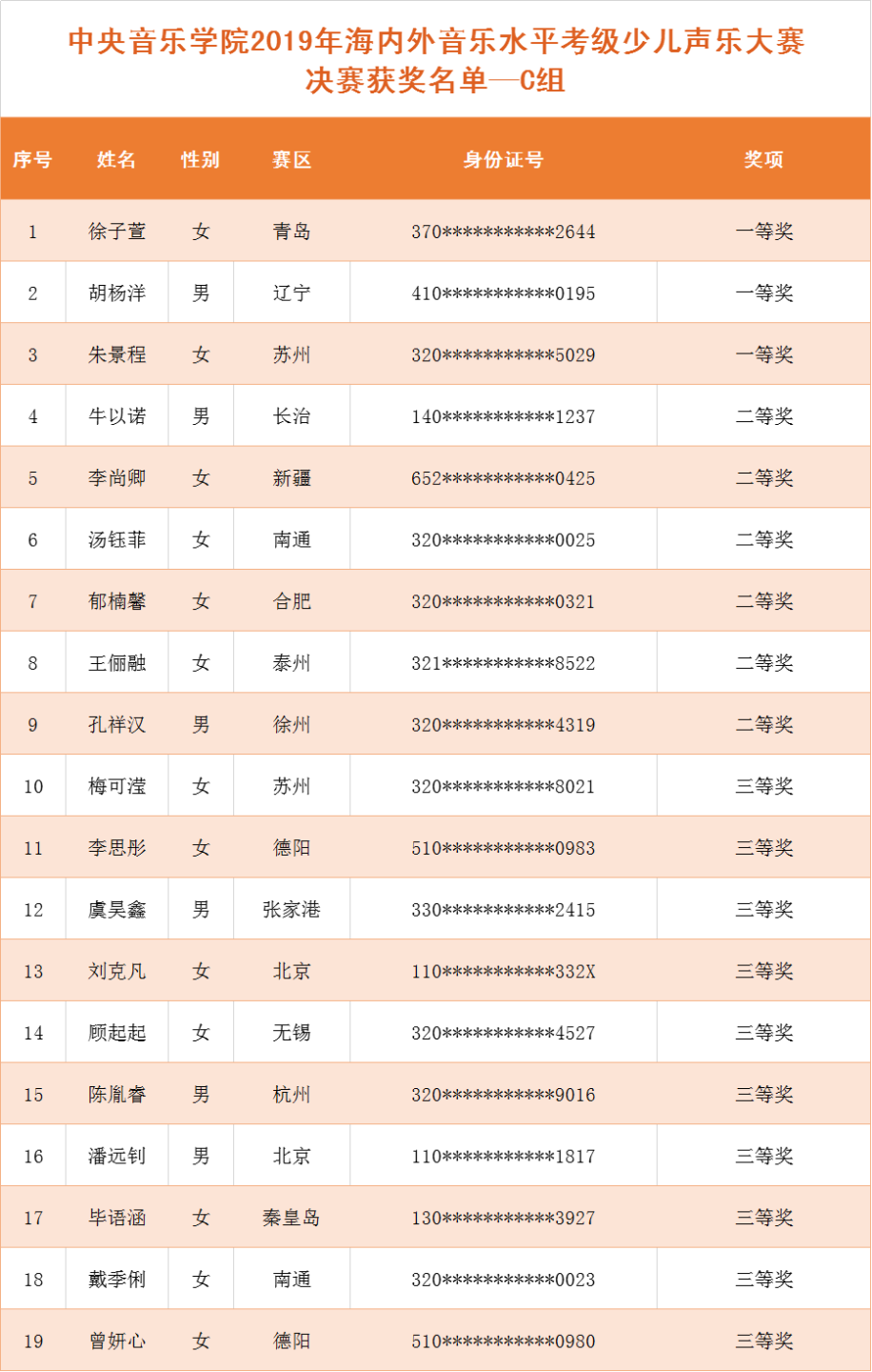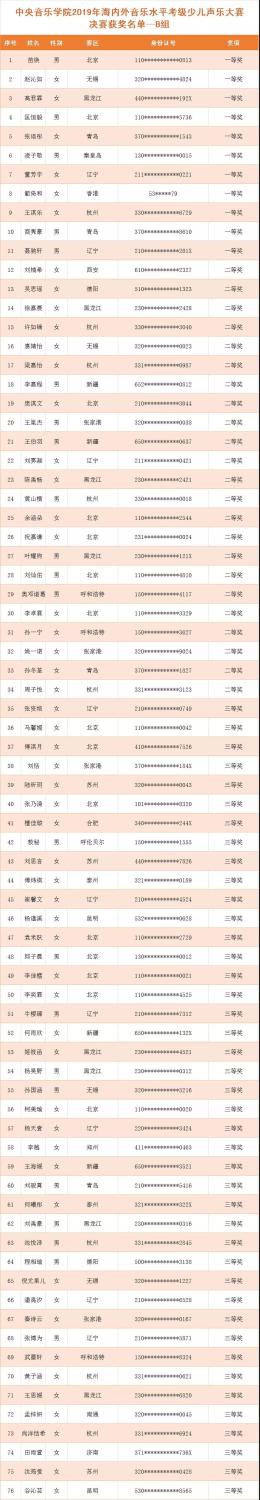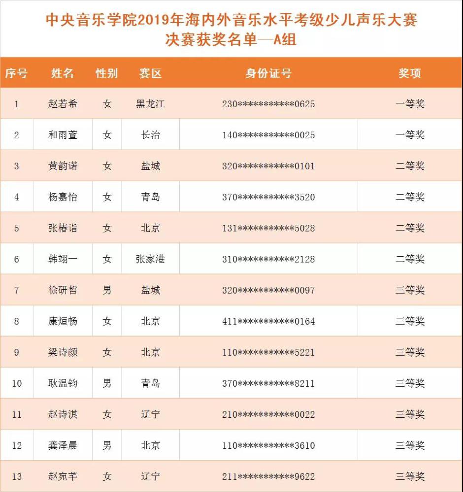 少儿声乐大赛获奖名单