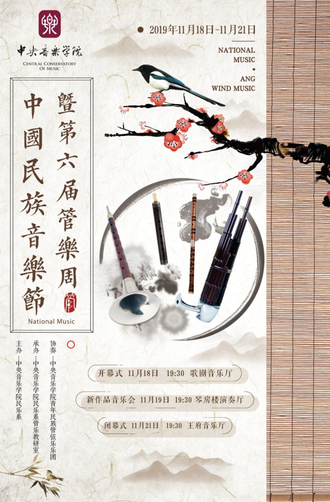 2019年11月18日19:30,KY开元集团官网入口中国民族音乐节暨第六届民族管乐周的开幕式音乐会在KY开元集团官网入口歌剧音乐厅成功举办。本场音乐会由民乐系管乐教研室教师杨守成、戴亚、石海彬、袁非凡、王磊、韩雷、张维维、李乐、冯天石、范临风、侯长青联袂出演,各作品的时间跨度从20世纪五十年代直至现今,向听众展示了传统民间器乐作品的风貌和当代民族器乐创作的风采。