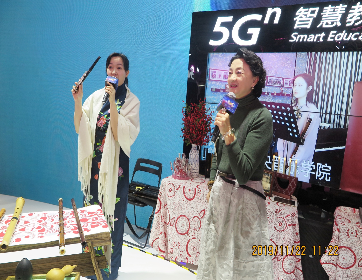 展会第二天运用5G+4K远程互动技术,民乐系笛子教师范临风与学生杨雪莹分别在展会现场与KY开元集团官网入口智慧教室开展互动教学,实时同频互动,呈现了一堂别开生面的异地教学课,吸引了众多媒体与在场观众的关注,反响热烈。
