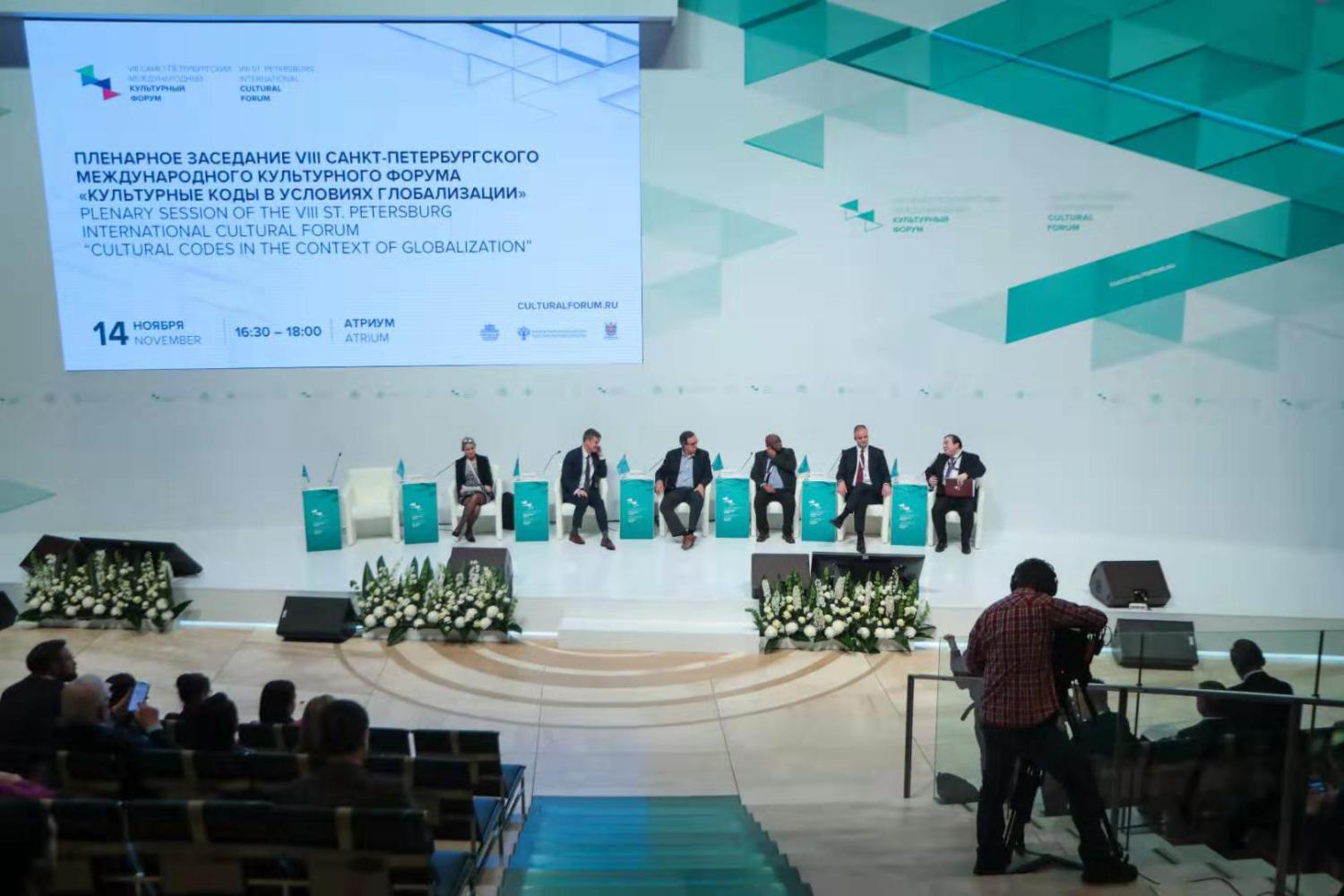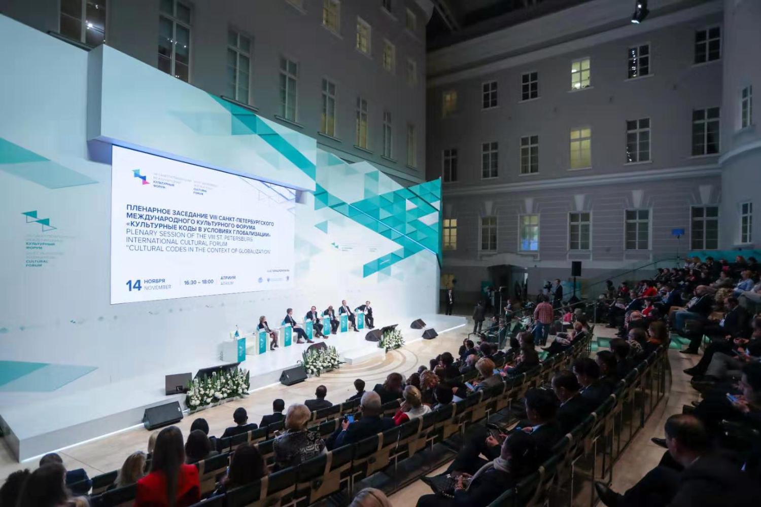 “圣彼得堡国际文化论坛”由俄罗斯联邦政府、俄罗斯联邦文化部主办,圣彼得堡市政府承办。自2012年创办以来,每年吸引了来自世界各地的数千名文化领域的专家、各国政要、著名音乐家、知名导演、舞蹈明星和剧院高层管理者。今年论坛的主题是“全球化世界的文化密码”,中国担任了本年度的主宾国。俄罗斯总统普京和中国文化和旅游部部长雒树刚为论坛致贺信。中国文化和旅游部副部长张旭出席并宣读贺信。俄罗斯副总理奥莉加·戈洛杰茨出席论坛开幕式。据俄罗斯副总理戈洛杰茨在开幕式上的介绍,共有来自96个国家的逾3.5万名嘉宾参与了本届论坛的各项文化活动。