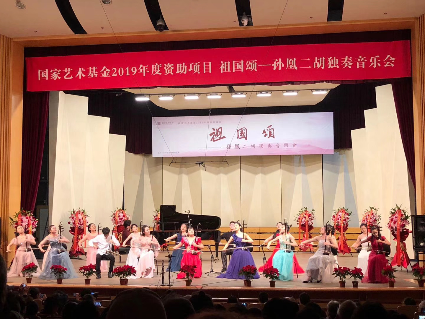 2019年11月2日晚,“祖国颂——孙凰二胡独奏音乐会”在KY开元集团官网入口王府音乐厅举行。音乐会是国家艺术基金2019年度资助项目,由KY开元集团官网入口民乐系主办。KY开元集团官网入口党委书记赵旻,党委副书记刘春梅,中国音乐家协会分党组成员、副秘书长王宏,中国民族管弦乐学会会长刘锡津,中国民族管弦乐学会胡琴专业委员会会长陈耀星,中国二胡学会秘书长周维,刘长福、李恒、许讲德、杨光熊、朱广星等二胡界前辈名宿及来自河北、河南、湖南、湖北、陕西、山西、山东、四川、西藏等全国各地的乐迷、外国友人观看了音乐会。