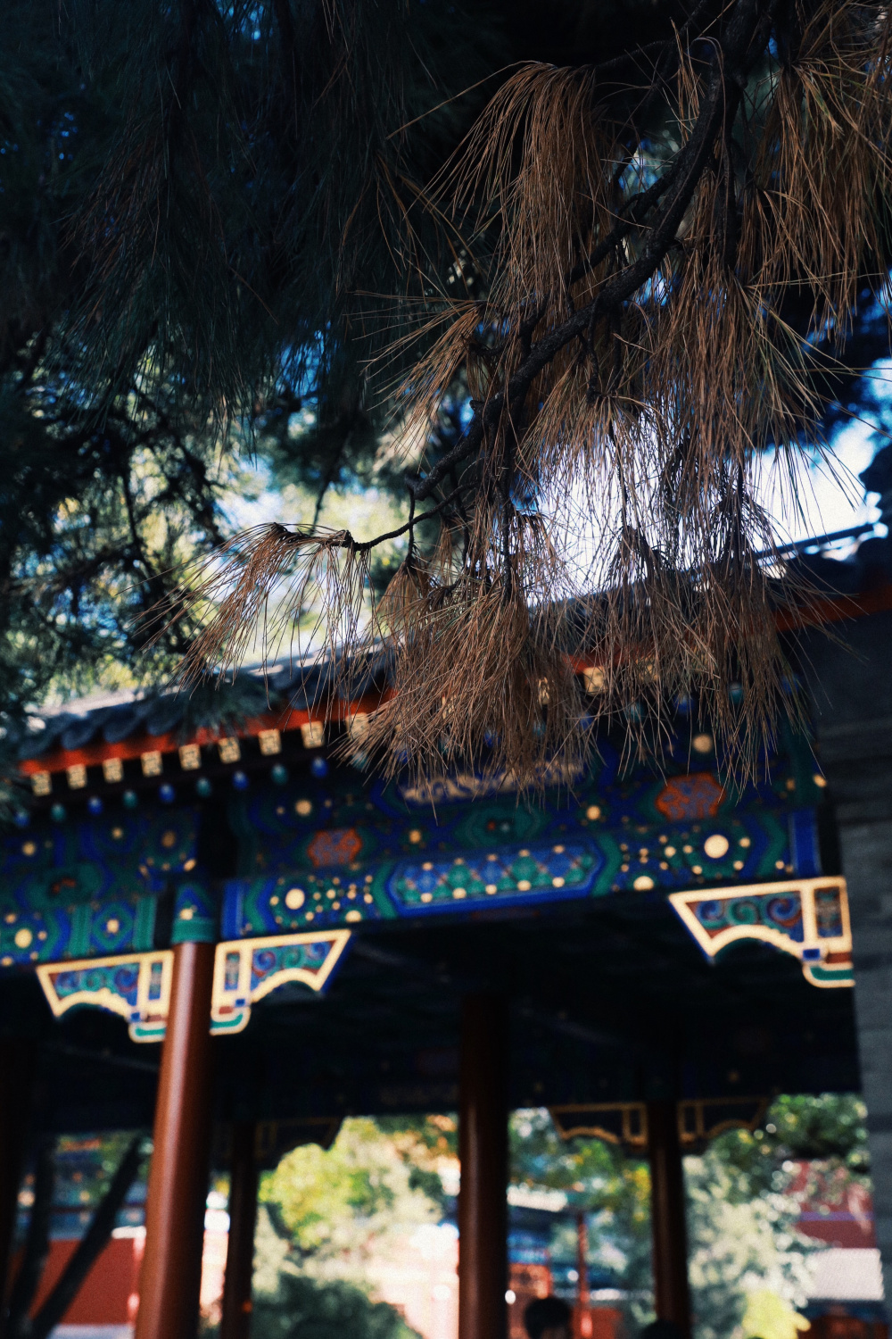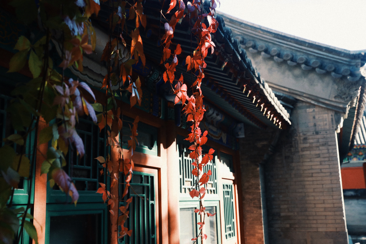 在红墙的映衬下银杏叶黄得醉人