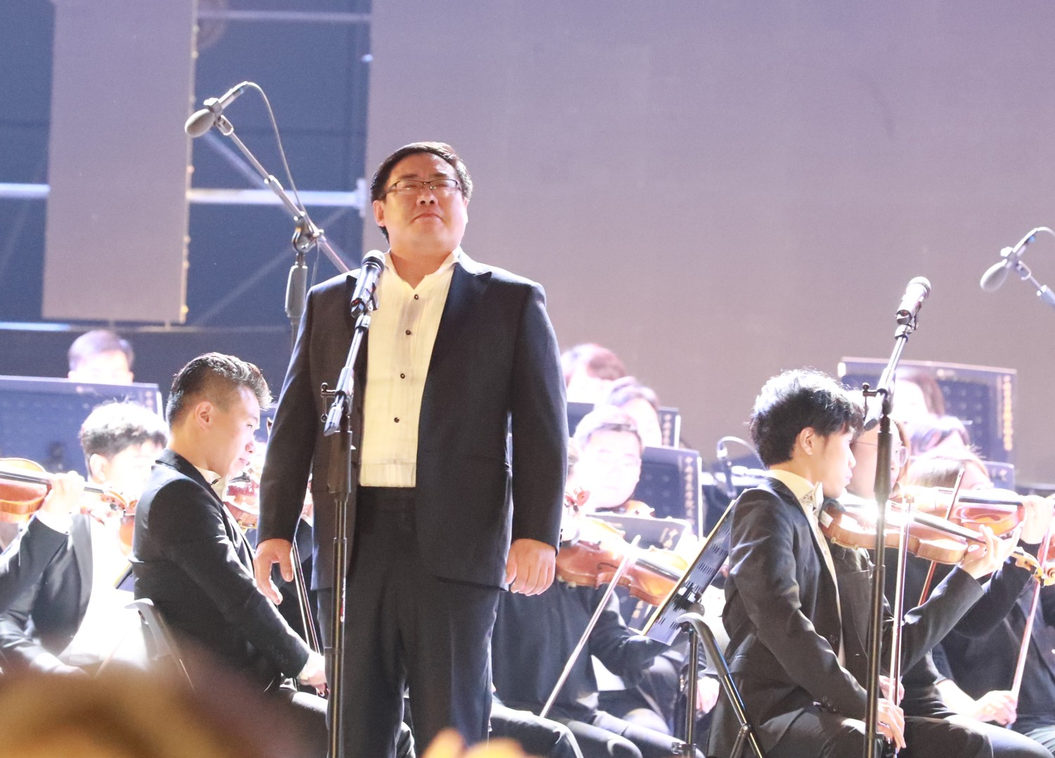 全场观众与乐团铿锵有力、宏伟嘹亮的演绎了一首《义勇军进行曲》将整个音乐厅唱响同时也拉开了本场音乐会的帷幕。