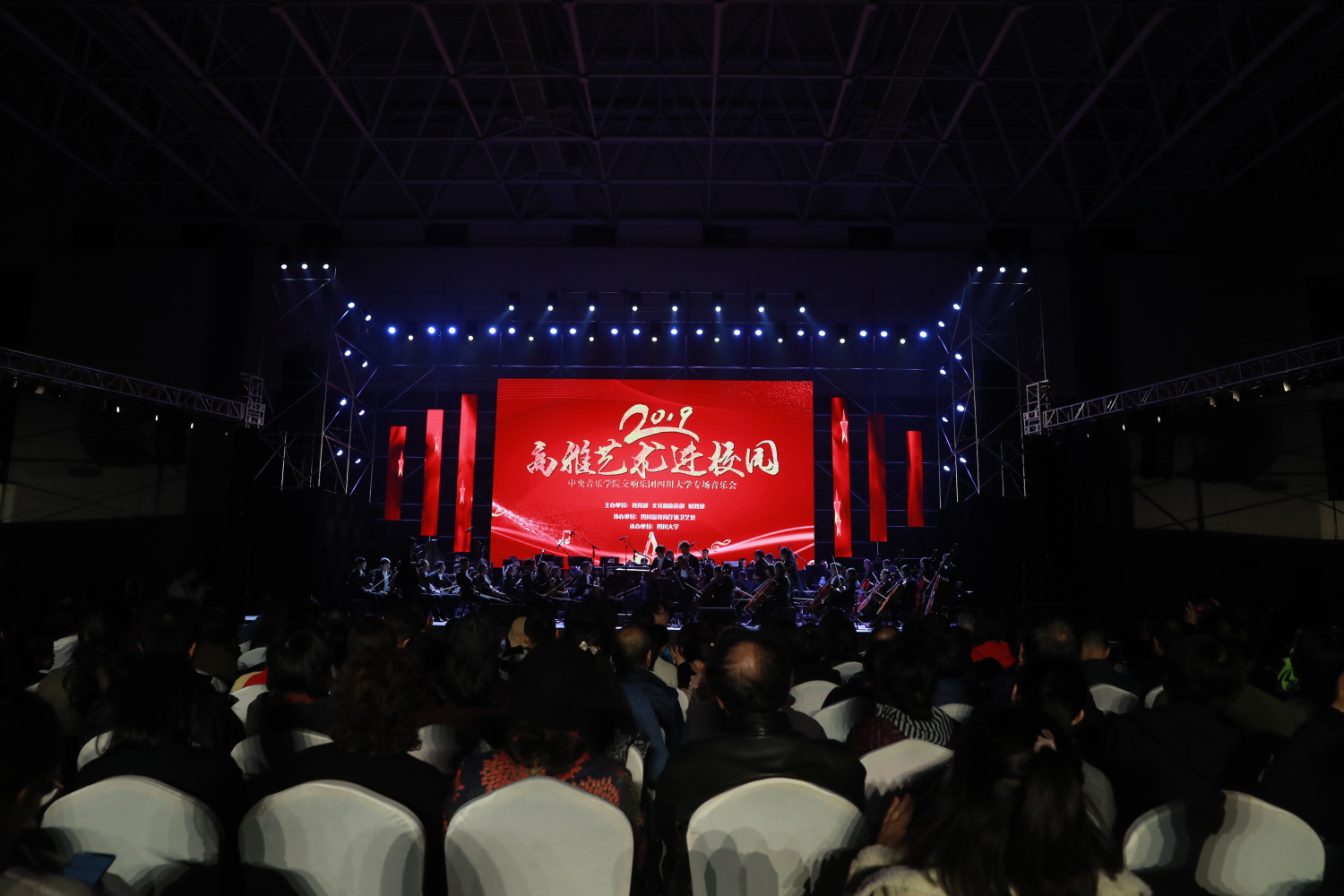 2019年11月8日,在环境幽雅、花木繁茂、碧草如茵、景色宜人的四川大学中,KY开元集团官网入口交响乐团在此举行了一场高雅艺术进校园音乐会,为近3000名师生送去音乐的盛宴。当晚,师生们热情高涨、座无虚席。音乐会以讲演结合的形式演出,这种形式拉近了高雅音乐与师生的距离,在欣赏音乐的过程中感受到了音乐的魅力。