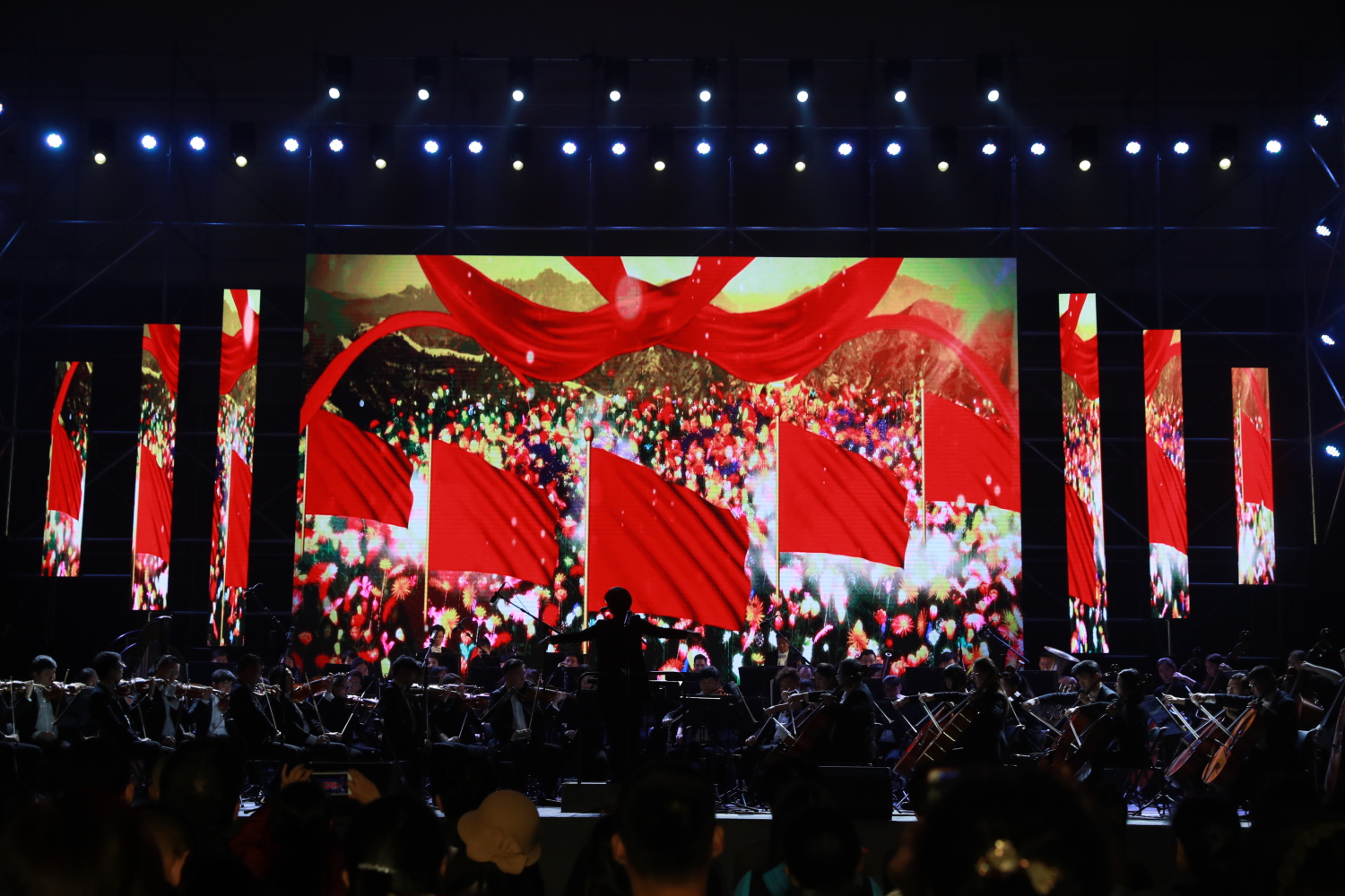 在整场音乐会的最后尤其令人印象深刻,全体的观众在指挥与领唱的带领之下齐声高唱《我和我的祖国》,近3000名师生进行演唱,表达出亿万中华儿女对祖国母亲诚挚的爱。