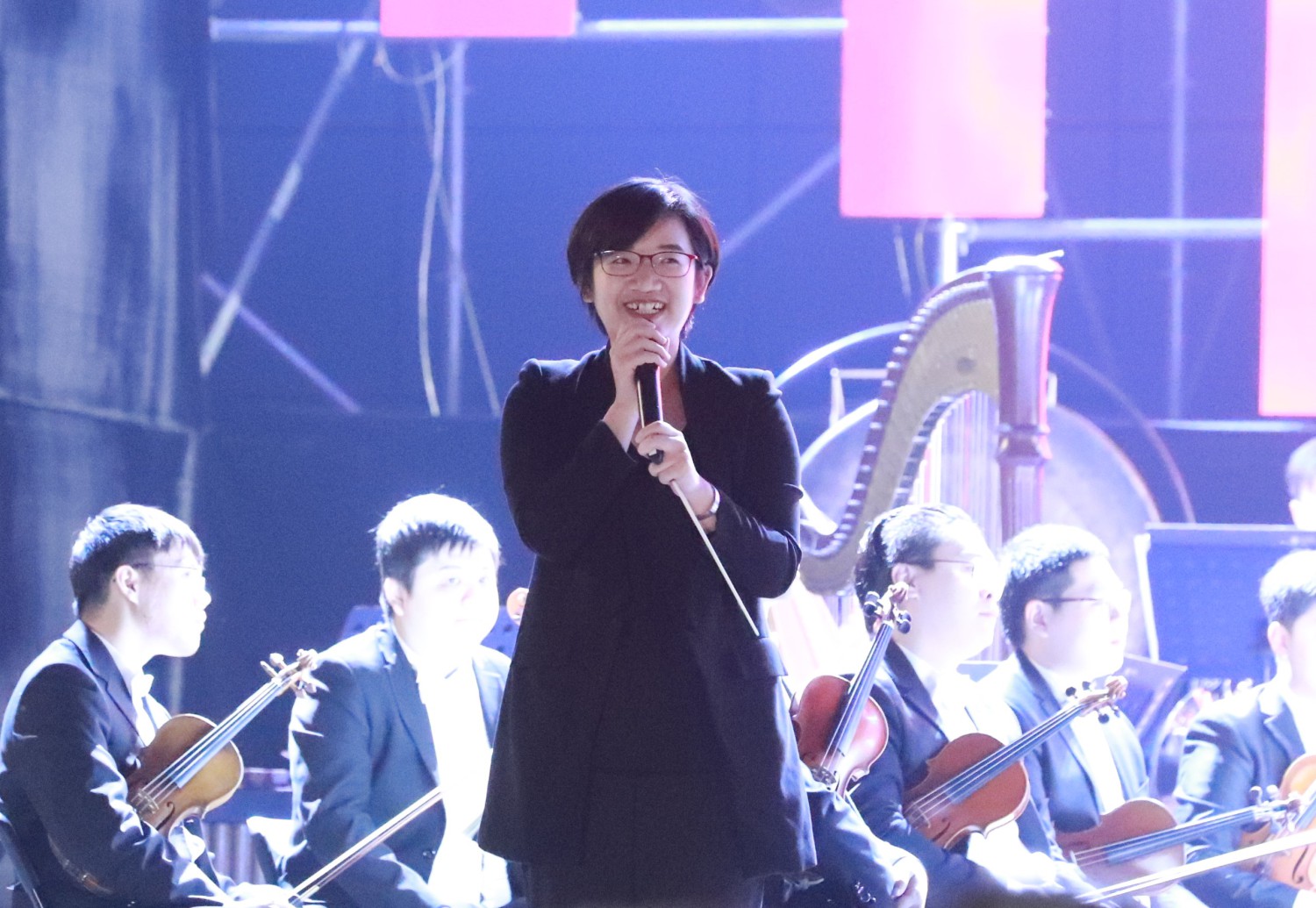 乐团指挥赖嘉静全程对演出曲目做细致深入地讲解,涵盖曲目创作背景、音乐风格、交响乐发展史等多角度,还对交响乐团各声部乐器进行介绍,乐团演奏家们一一向大家展示了不同乐器的声音、运用、形貌,更通过演奏大家耳熟能详的古典、流行音乐片段,让在场观众高度共鸣。