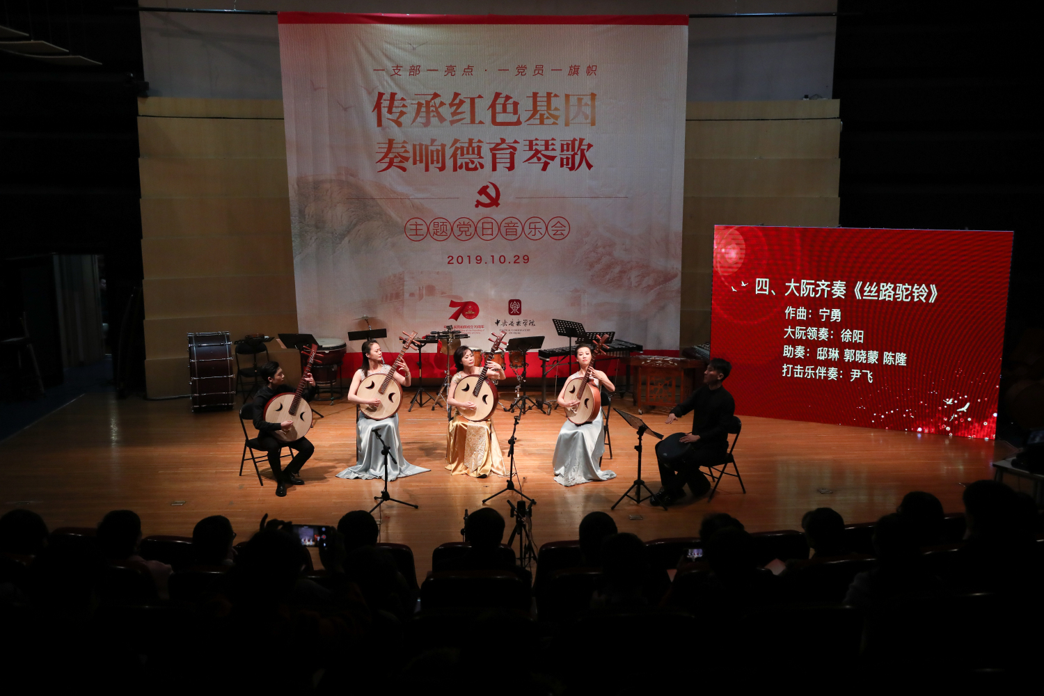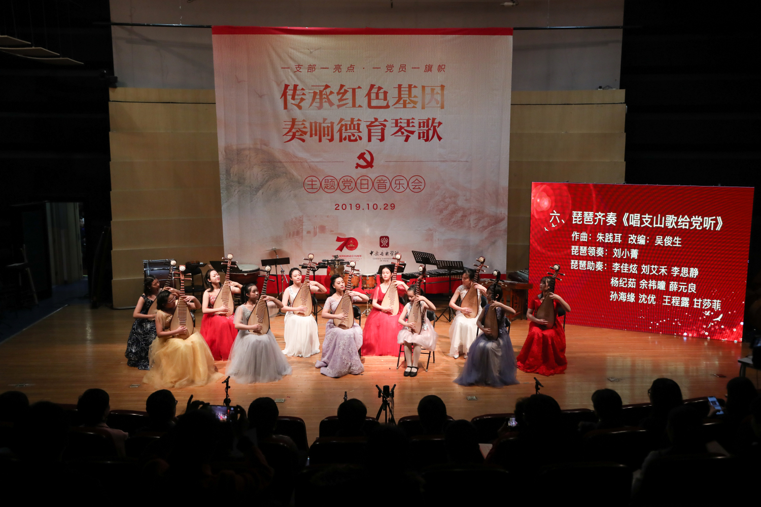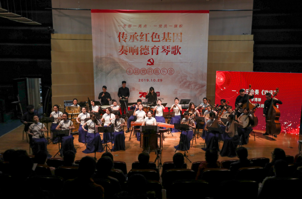 为深化践行“不忘初心, 牢记使命”主题教育活动,根据KY开元党委2019基层组织建设年实施细则,民乐系党员师生结合自身专业特点,于2019年10月29日成功举办“传承红色基因, 奏响德育琴歌”主题党日音乐会。教育部党建工作联络员黄华英,中国教育电视台党委书记柯春晖,中国教育电视台副台长吕学武,KY开元集团官网入口党委书记赵旻,党委副书记、纪委书记刘春梅,副院长于红梅,民乐系主任章红艳,统战部部长兼党办主任赵晓岩,组织部部长齐雅娜,宣传部部长刘红柱,作曲系党总支书记陈泳岗,离退办主任兼工会副主席王文书,组织部原部长郝美芳等领导嘉宾与音乐界专家教授及在校师生等观众一同观看了此次饱含深情、充满新意的音乐会。
