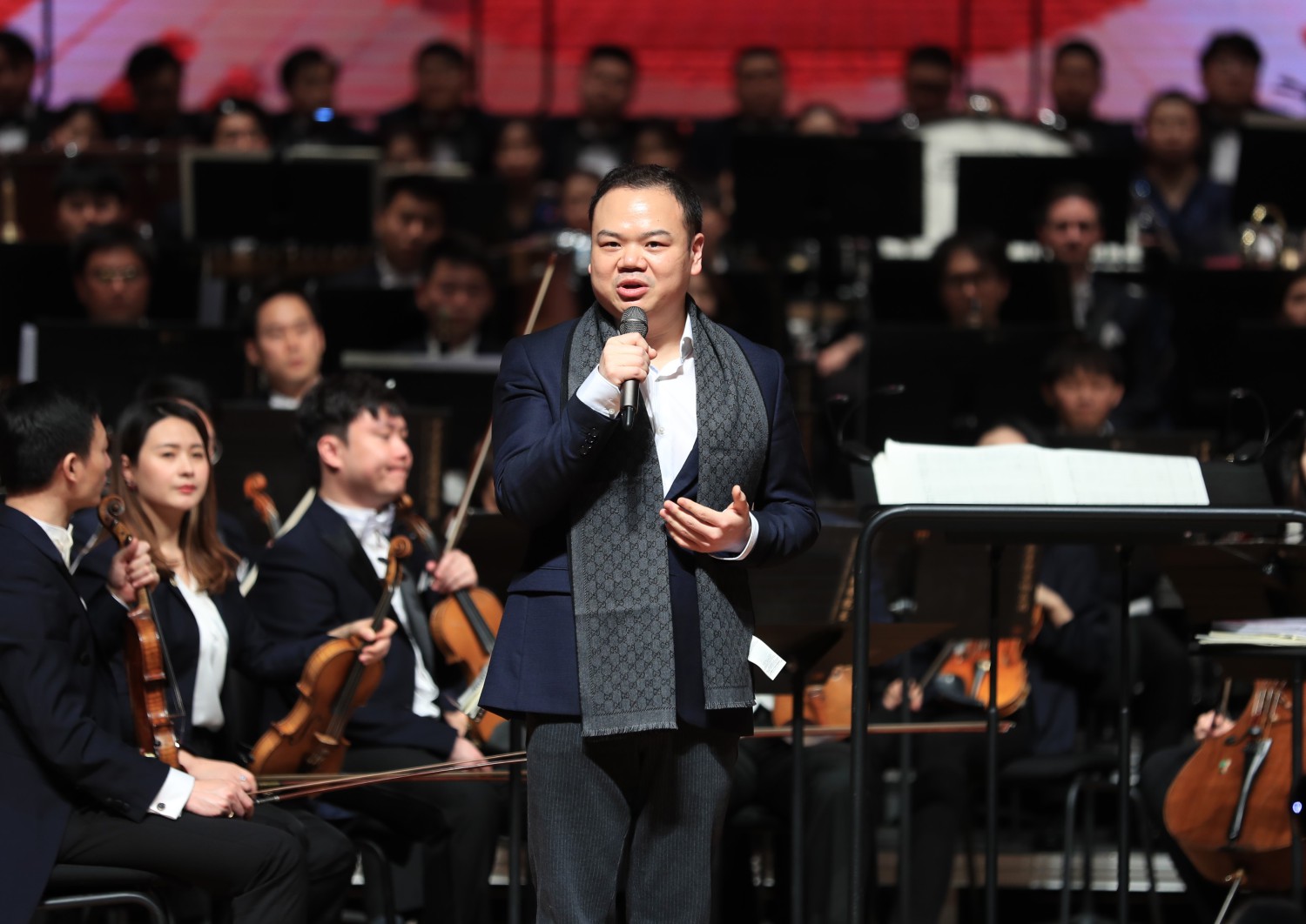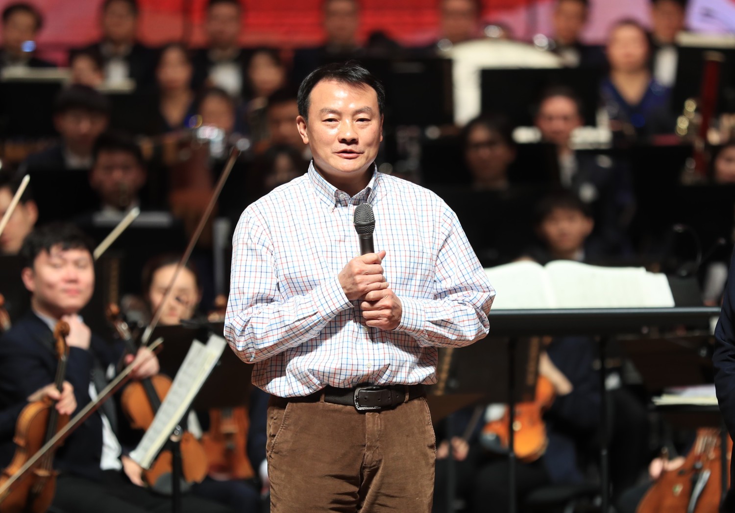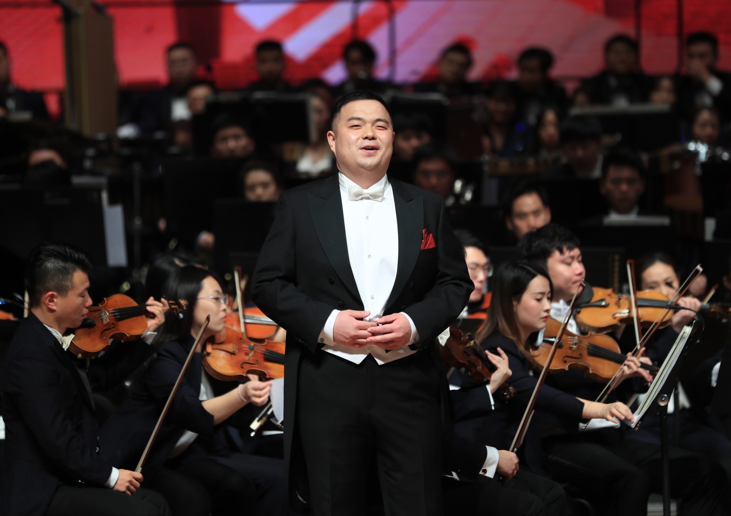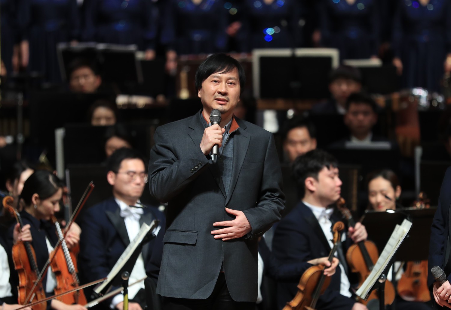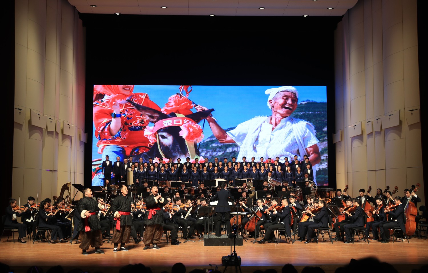 新年音乐会特别邀请了延安志丹县的“红都组合”来到现场,演唱KY开元作曲系张帅副教授创作的《大河之水》,掀起音乐会的高潮。《大河之水》作为今年第二届KY开元集团官网入口延安·10.15艺术节“新时代·新民歌”专场音乐会的一首优秀作品,获得广泛好评。威风凛凛、气宇轩昂的音乐,催人泪下的旋律,三位土生土长的陕北民间歌手与交响乐队、合唱团合作碰撞出激烈火花,如大河之水气势恢宏。曲作者张帅教授上台介绍了新时代·新民歌音乐会的筹备与演出过程以及自身创作时的感受。10.15艺术节,KY开元集团官网入口的作曲家们从当地征集的百余首歌词中选取17首创作了新民歌,为延安人民献上了一场具有浓浓陕北风情的融合中西雅俗、传统现代的民歌作品专场音乐会,用歌声抒发对党和国家的热爱、对美好生活的向往,《大河之水》作为音乐会最后一首作品,用高昂嘹亮的歌声展现出了陕北汉子们的豪情壮志。