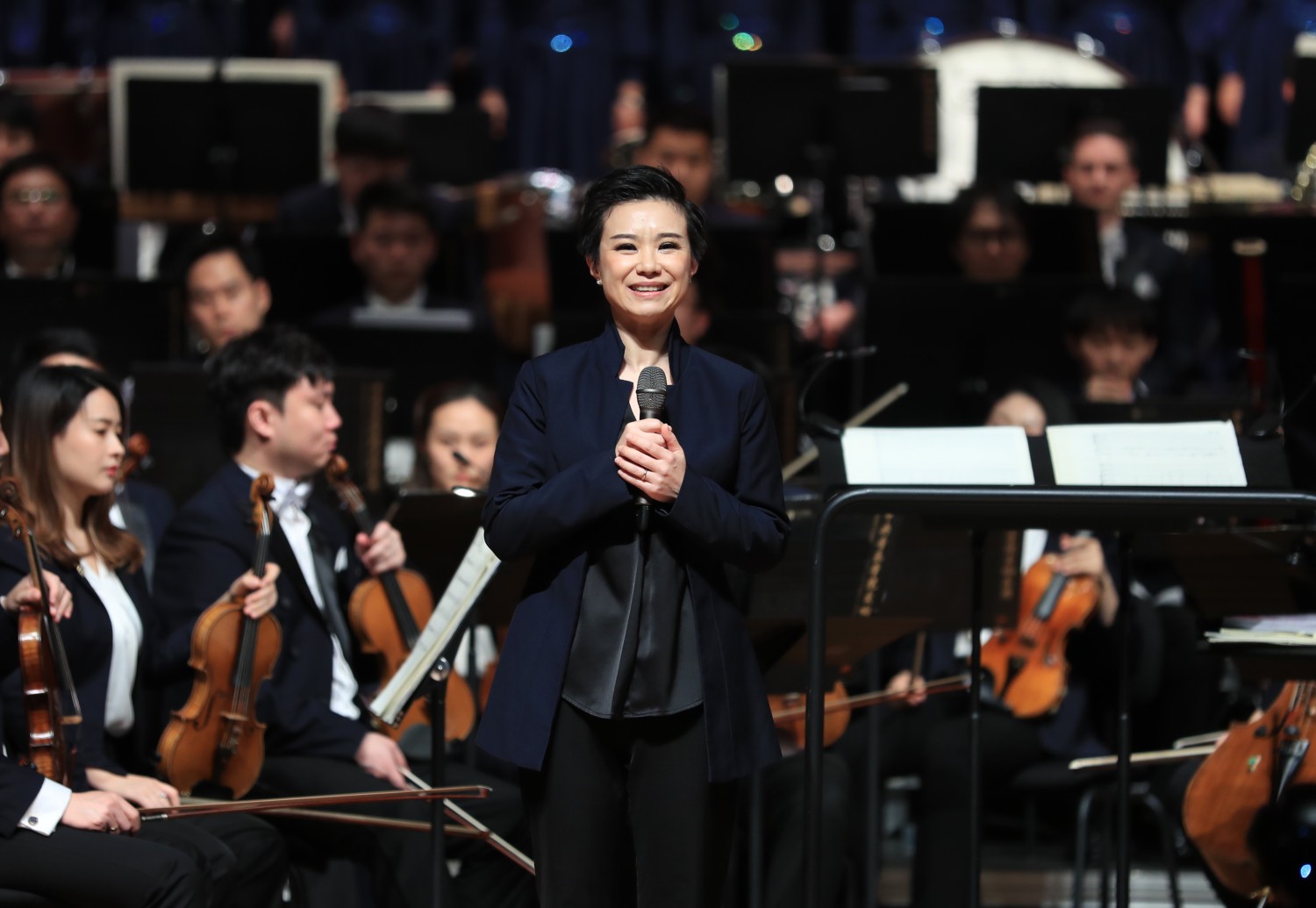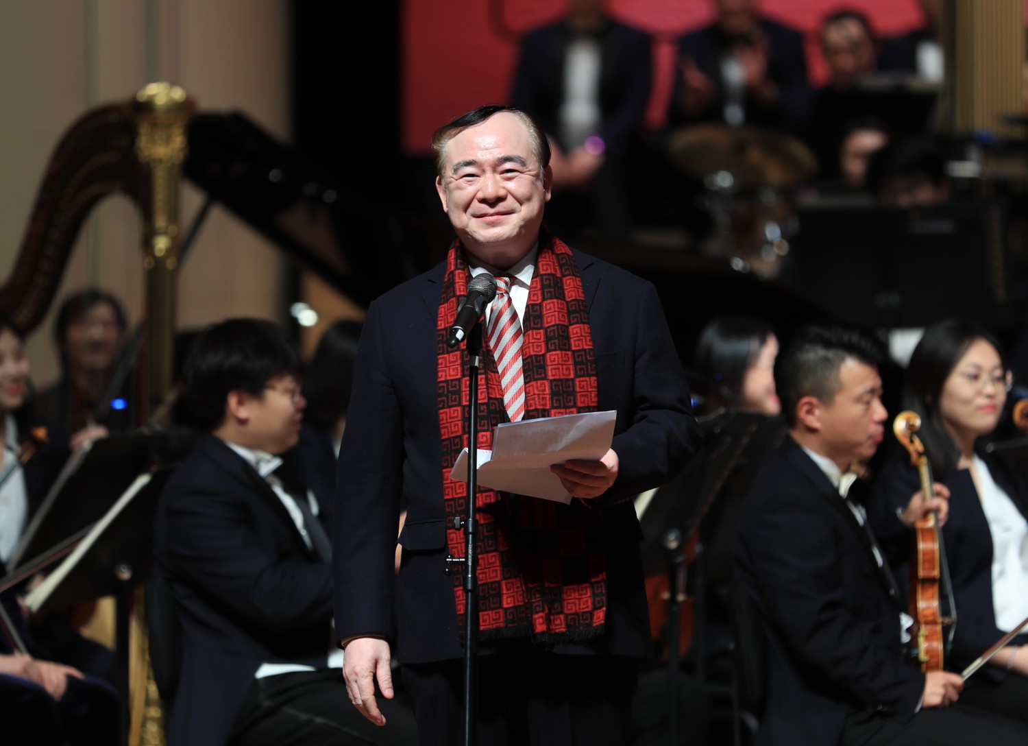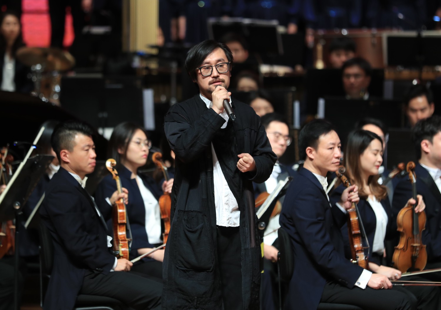 音乐会以《我们》开启。这首歌曲在疫情期间由全国百余所艺术院校及郎朗、吕思清等全球200位音乐家、几十所顶尖音乐学院师生组成的万人云合唱进行表演,献给心手相连的普通百姓、医务人员、军人、警察、科研人员等所有一线抗击疫情的人们,产生了巨大的社会影响。曲作者李小兵教授在新年音乐会现场分享了创作这首曲目的心路历程。他谈到,这首合唱作品是全国抗击疫情的那段特殊时期怀着满腔深情写作出来的,今天在现场聆听时感到十分震撼,他希望能通过这首作品祝福世界、祝福未来,祈祷全世界顺利度过难关。