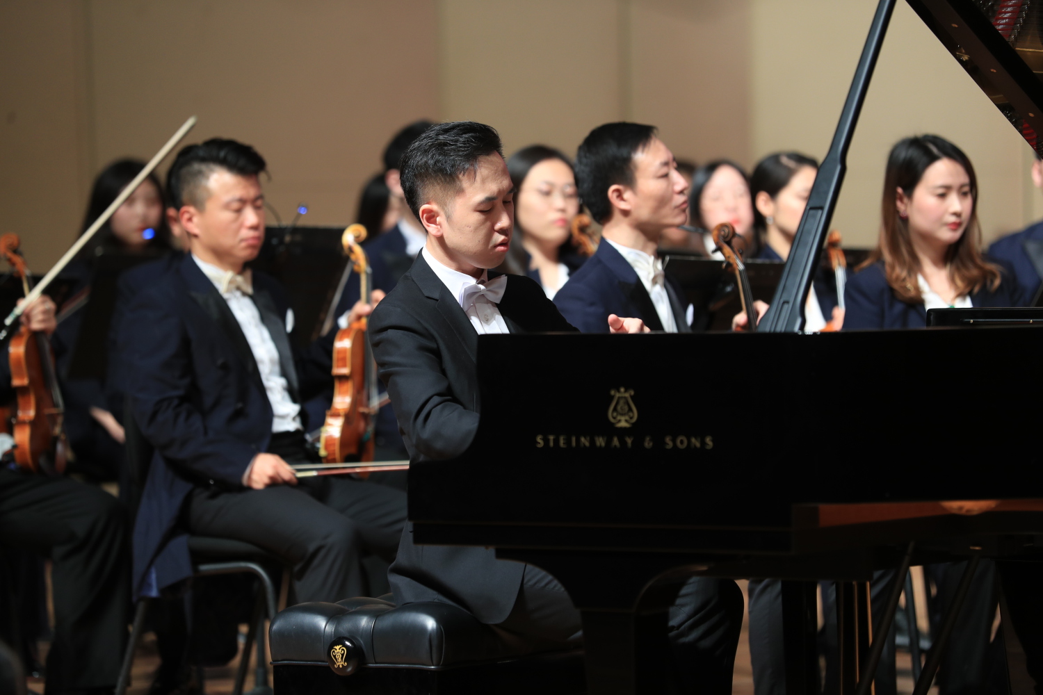 新年音乐会特邀2020KY开元集团官网入口拔尖创新人才培养项目(BOB)终选音乐会中的三位同学为大家演绎中外优秀力作,三位同学以精湛的演奏展示了央音学子昂扬向上的风采和高水平的技艺。民乐系薛冰倩与交响乐团首演了KY开元校友李博禅作曲的琵琶协奏曲《晚秋》管弦乐队版,她的演奏清雅与浓烈并存;管弦系李天佑演奏的德国作曲家韦伯《F大调巴松协奏曲》,深沉有力,平滑灵动;民乐系打击乐同学曹恺中以卓越的技巧演奏了作曲家周龙的《大曲》。