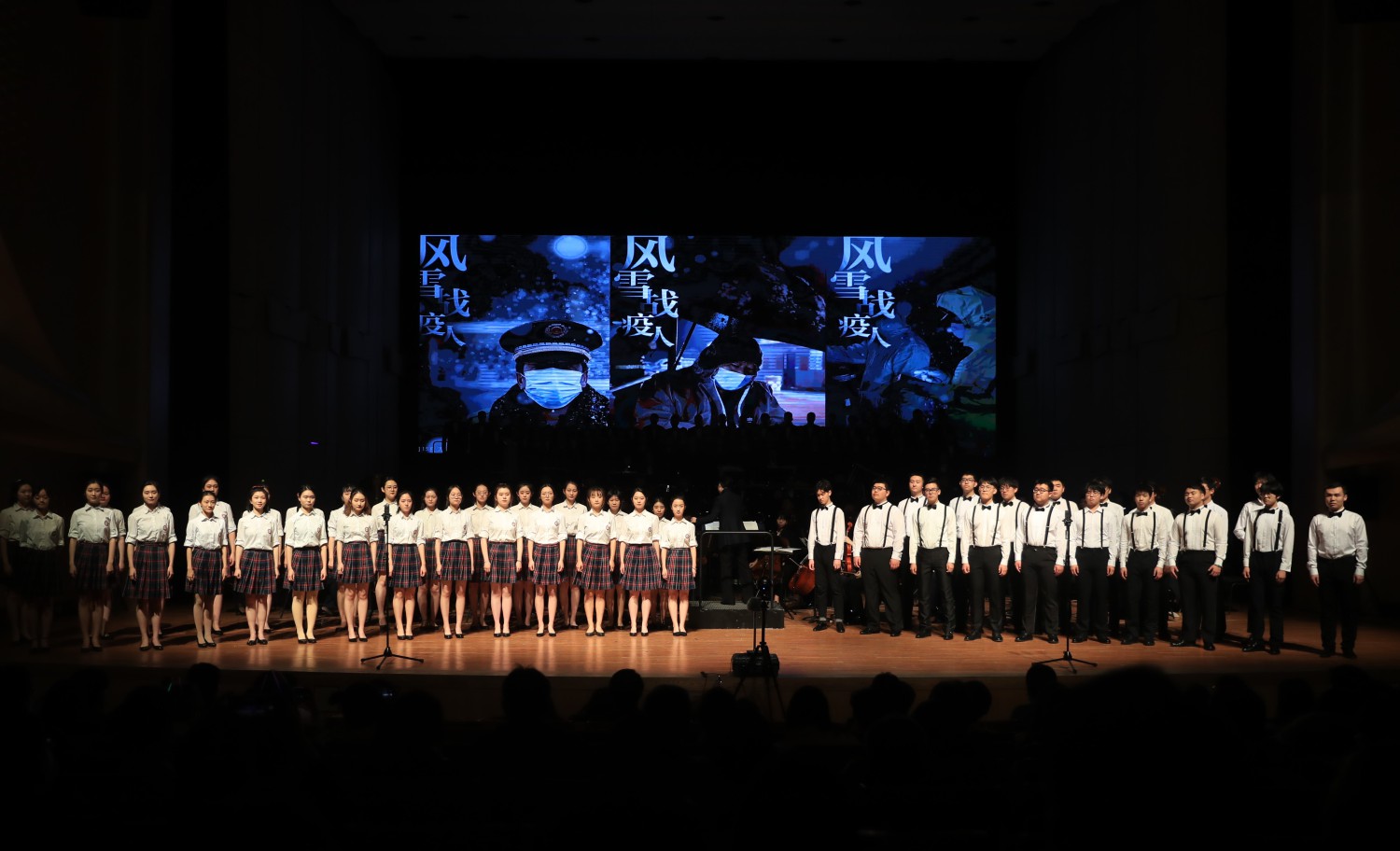 音乐会第二首曲目是由附中音乐教育学院合唱团带来的合唱曲目《那段时光》,歌曲由张征教授为今年所有毕业生创作,以优美的旋律传递着大爱真情,用音乐记录了那段特殊的日子。屏幕上的回忆弥足珍贵,附中同学们的歌声清澈纯真,感人至深,一曲听罢,心灵仿佛被洗涤,就如歌中所说,“心中洒满温暖阳光”。